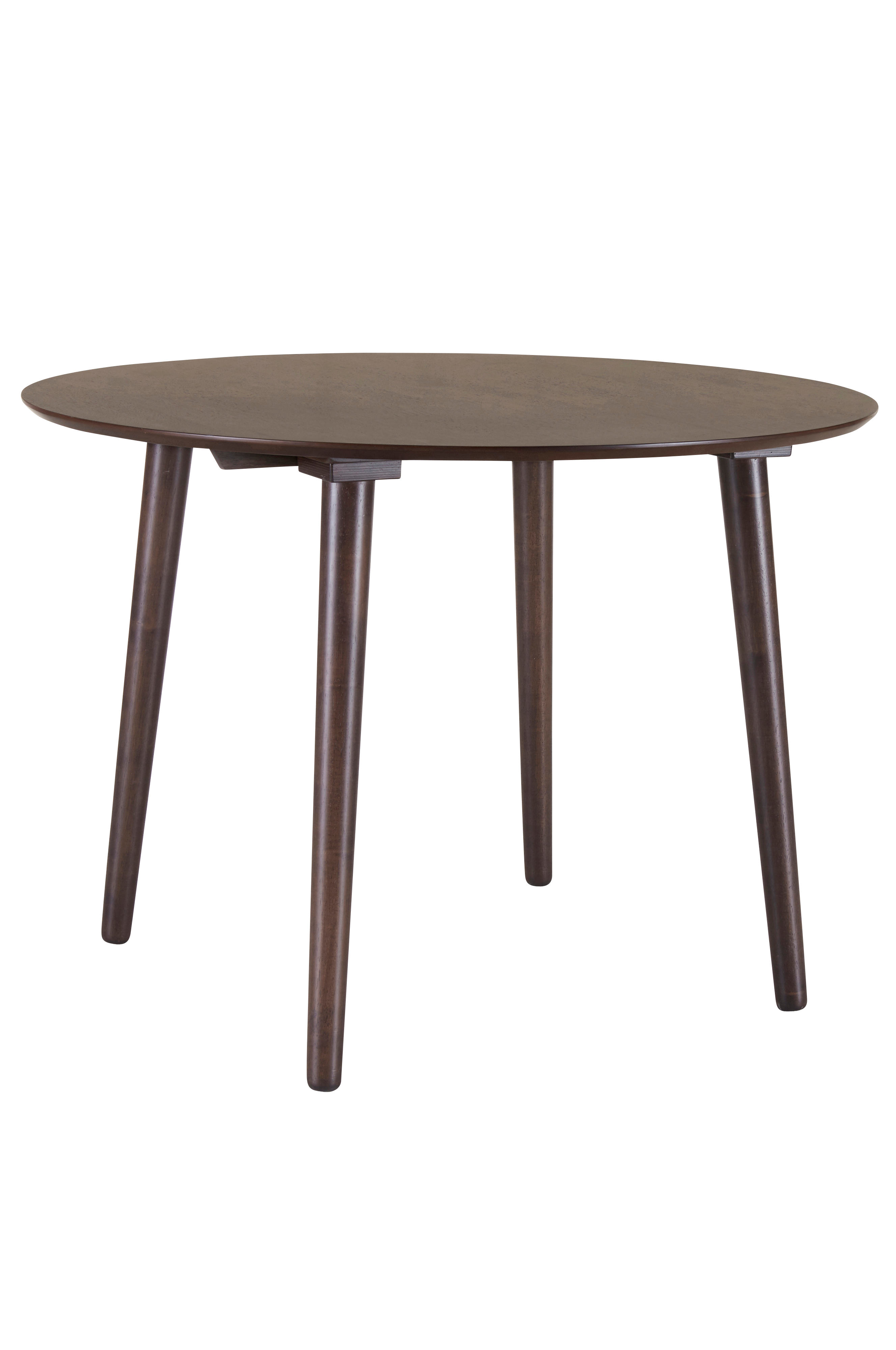 Pöytä, jonka pöytälevy on tuhkaviilutettua MDF-levyä ja jalat ja runko massiivikumipuuta. Ø 106 cm. Korkeus 76 cm. Pöytälevyn paksuus n. 2 cm. Toimitetaan koottuna (vain jalkojen ruuvit toimitettaessa). Paino 22 kg.