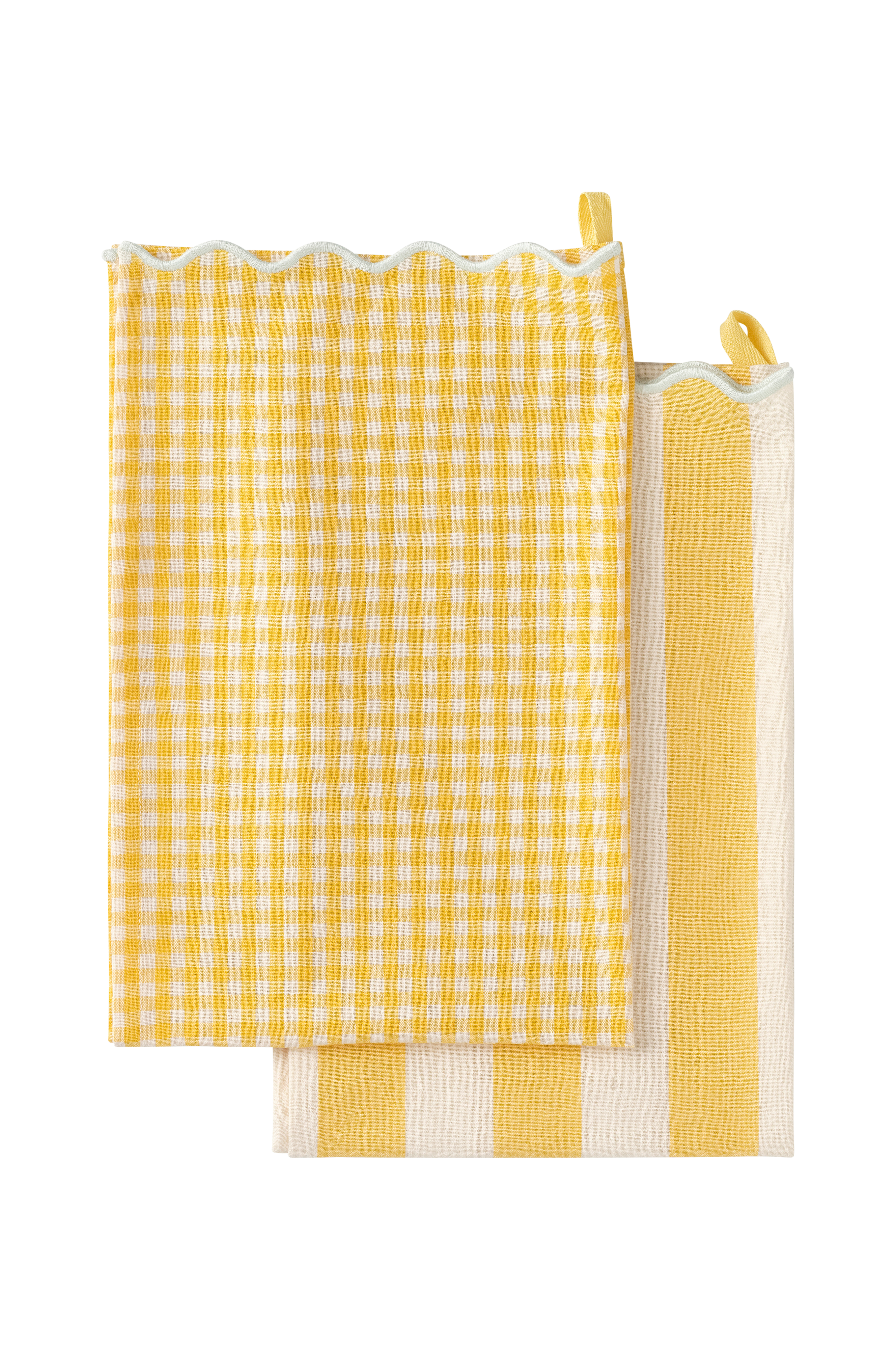 • Kaksi astiapyyhettä puuvillasta pehmeällä, pestyllä huolittelulla.