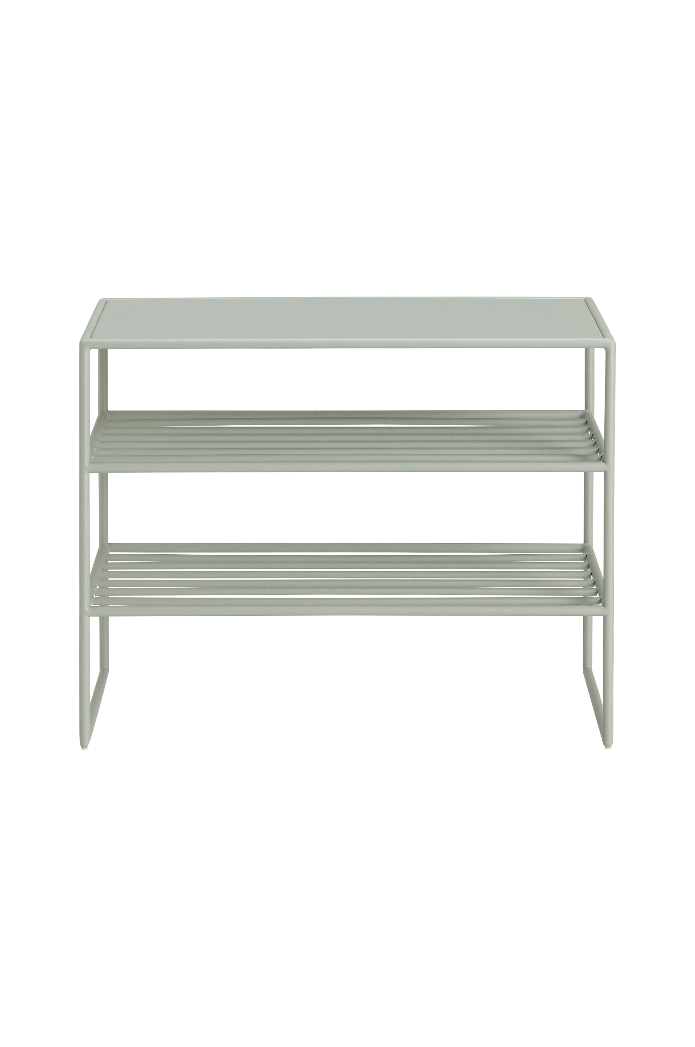 Kenkähylly/penkki jauhemaalattua metallia. Kaksi hyllytasoa päällyslevyn alla. Hyllytasojen välinen etäisyys 14/16,5 cm. Tila hyllyn alla 17 cm. Penkin enimmäiskuormitus 100 kg. Hyllytasojen enimmäiskuormitus 50 kg/hyllytaso.