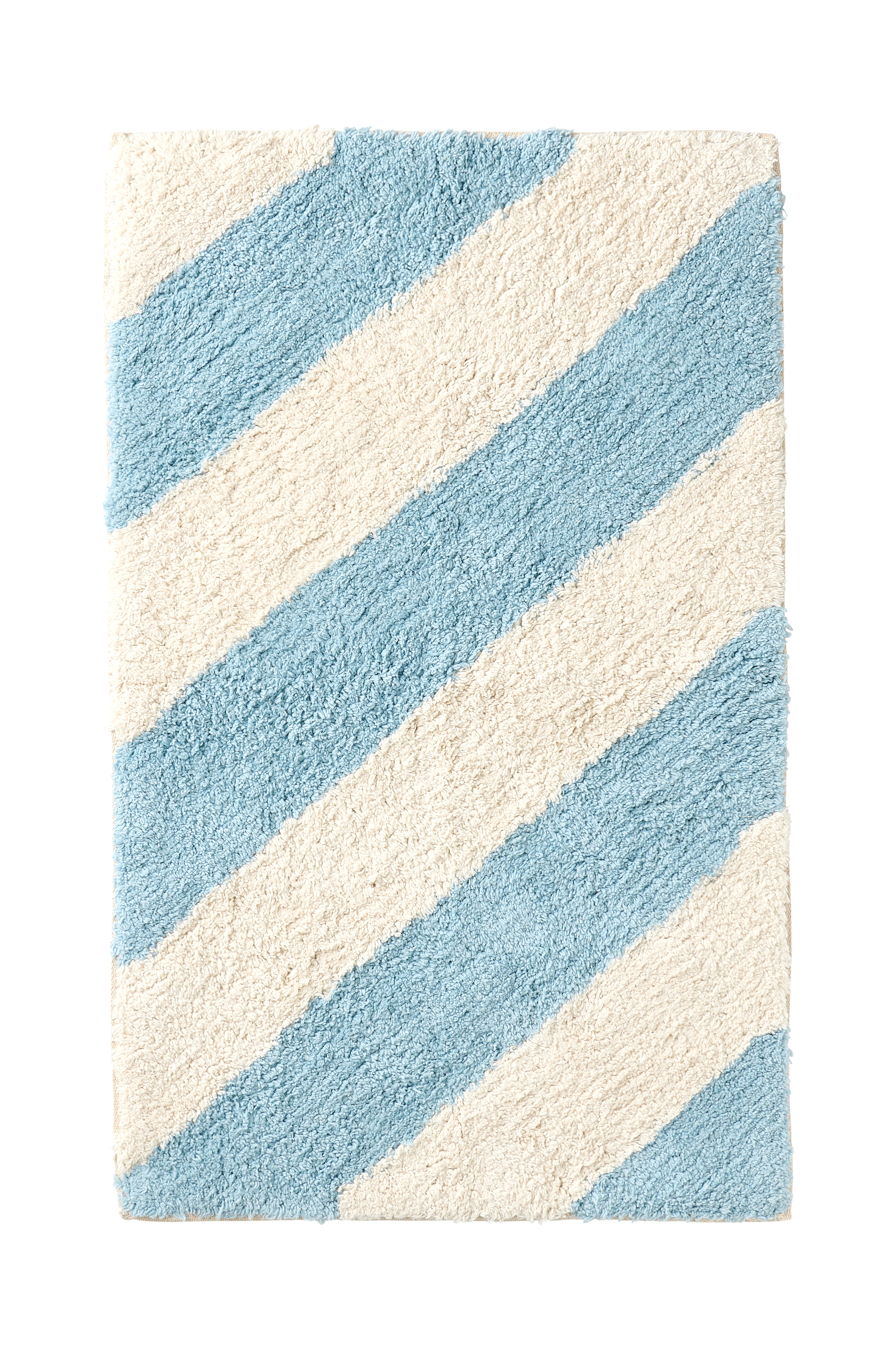 • Kylpyhuoneen matto tupsukoristeisesta puuvillasta diagonaalisilla raidoilla