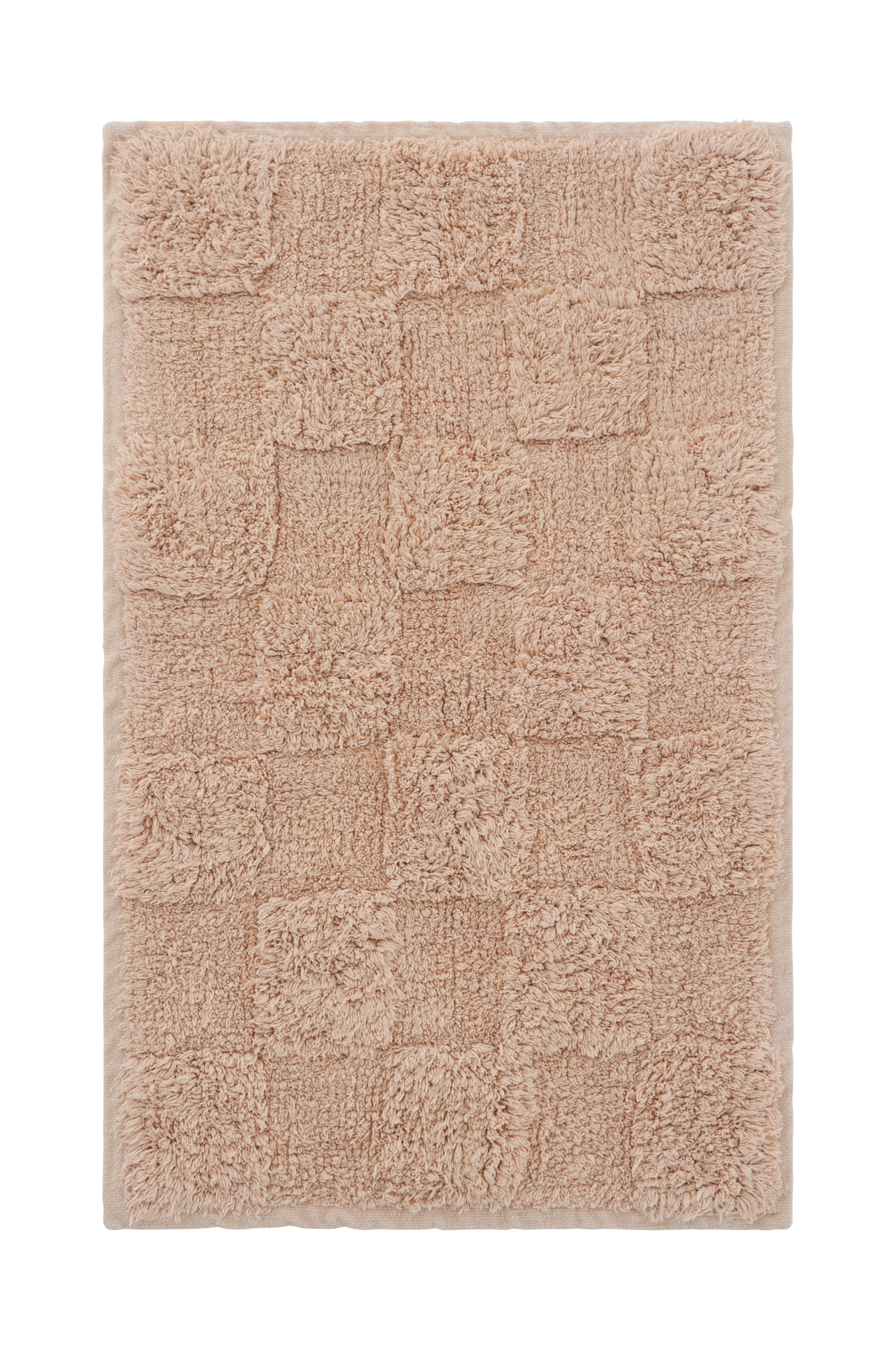 • Pehmeä kylpyhuonematto, jossa on tuftattuja neliöitä eri korkeuksilla.