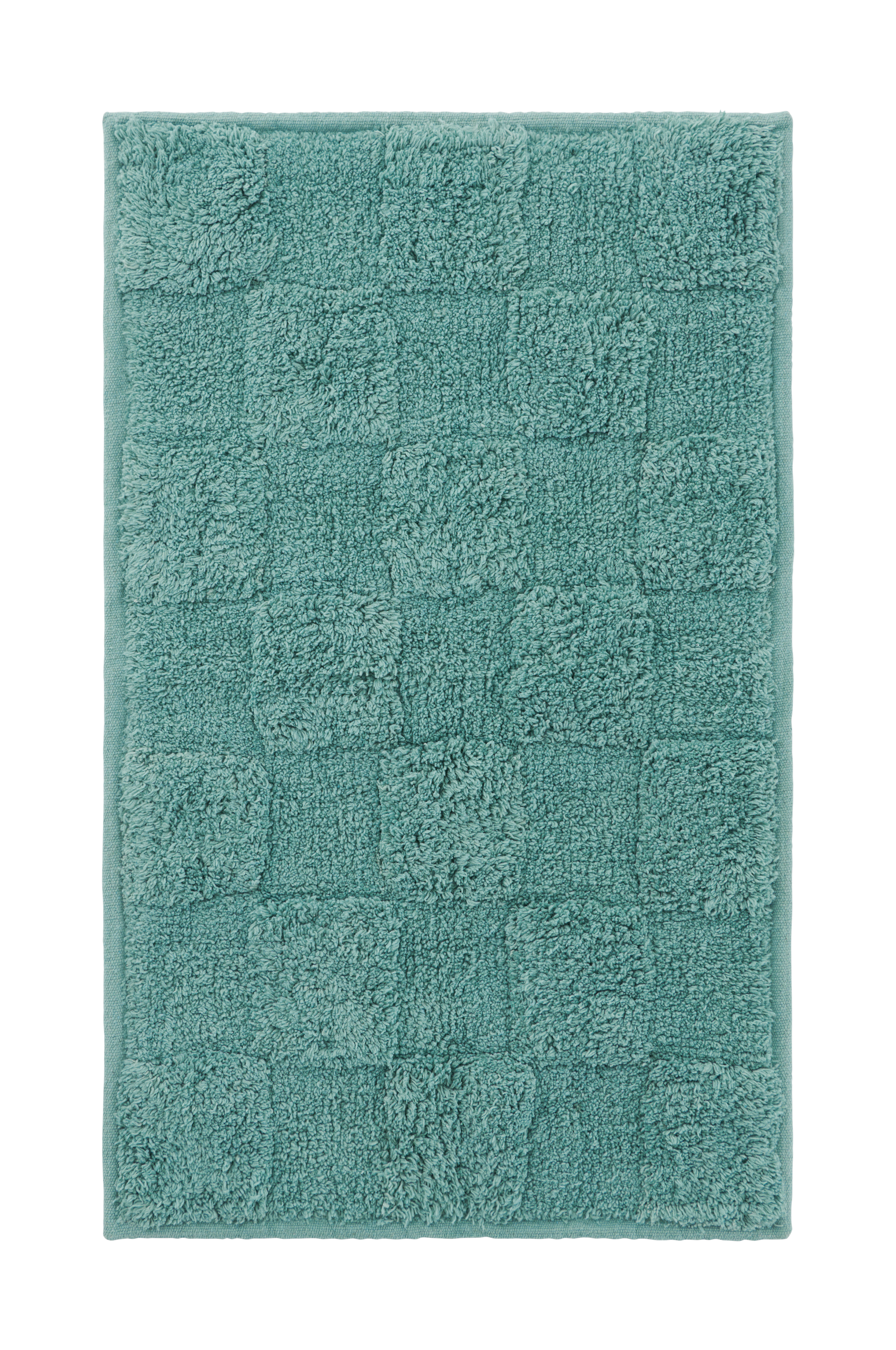 • Pehmeä kylpyhuonematto, jossa on tuftattuja neliöitä eri korkeuksilla.