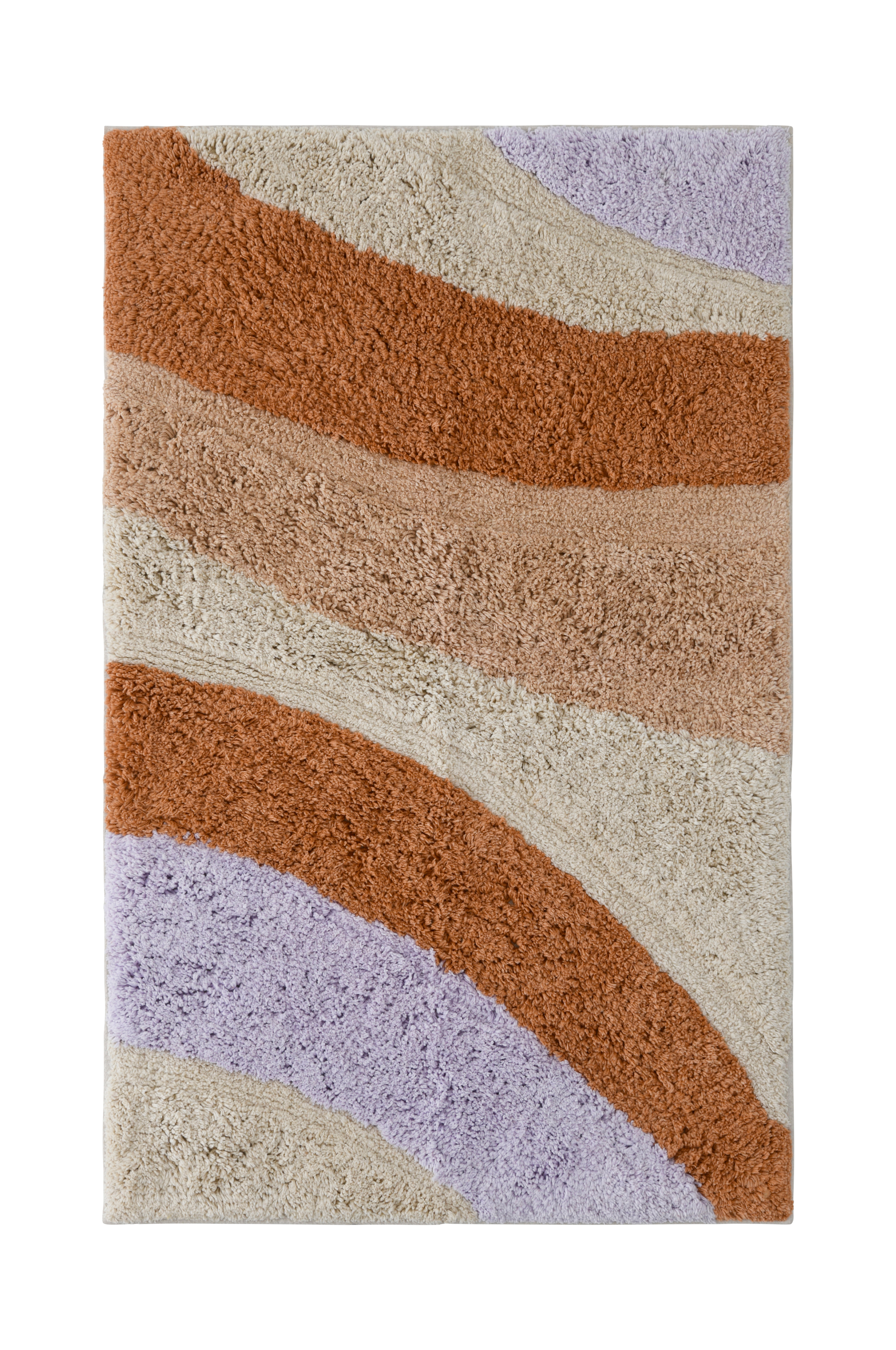 Tuftattu kylpyhuonematto puuvillaa. Nukassa eri korkeuksia.