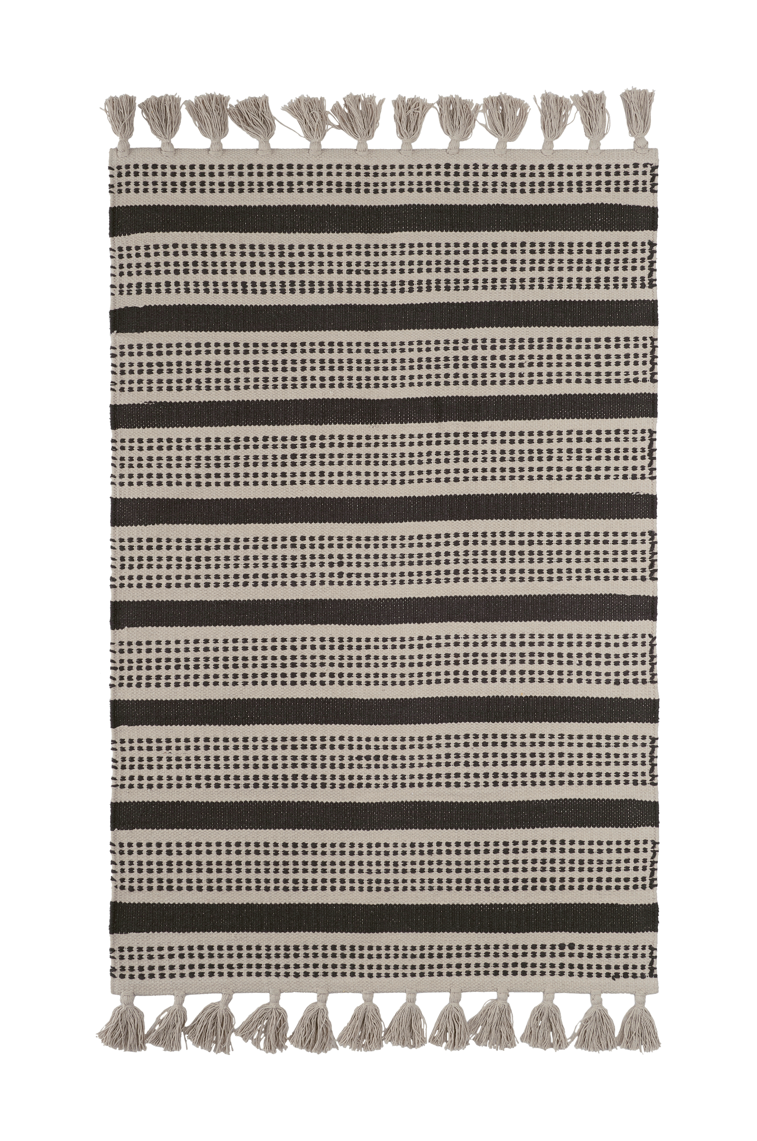 Raitakuosinen kylpyhuonematto puuvillaa. Päissä hapsut.