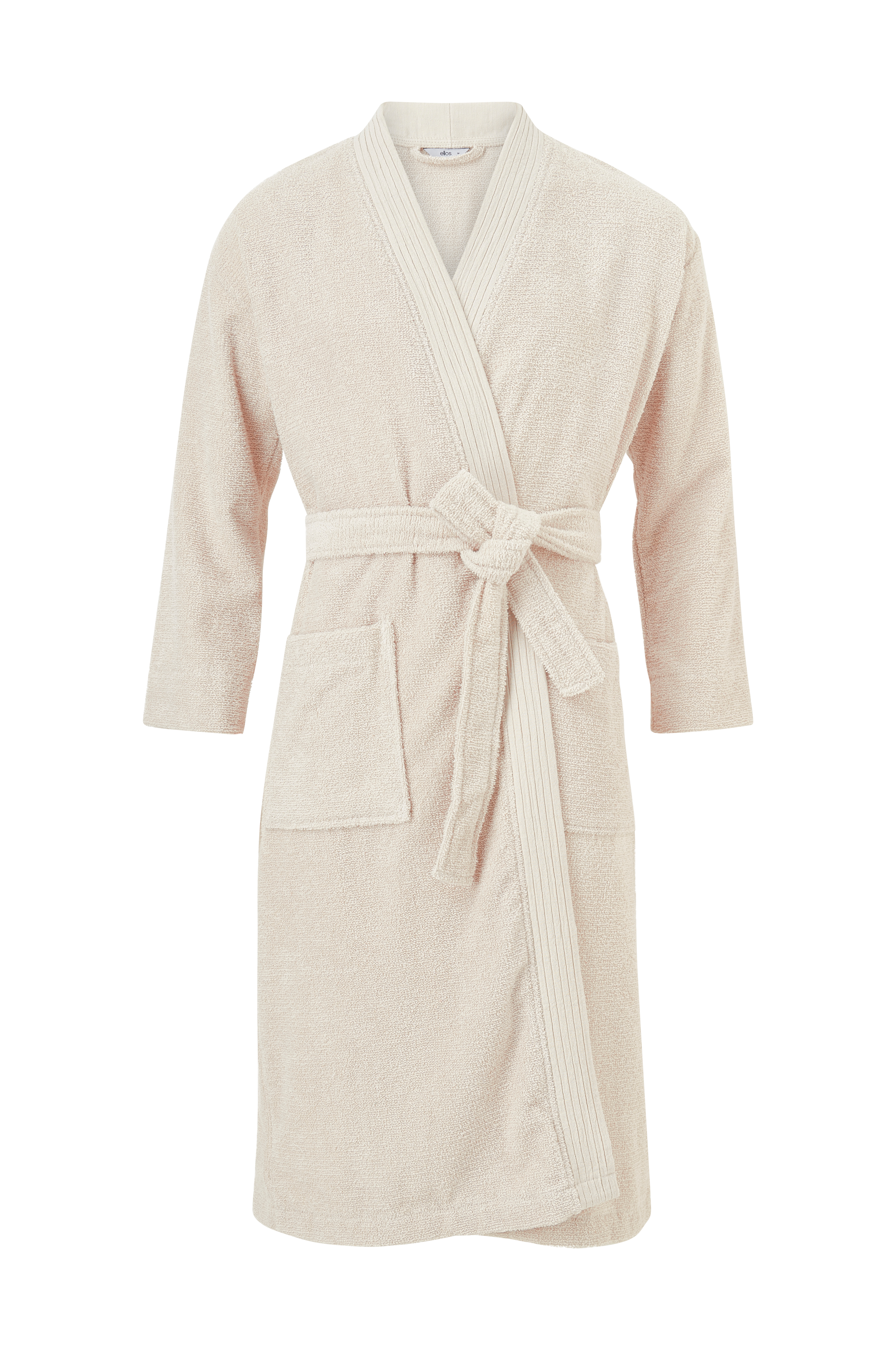 Kylpytakki pehmeää pellava-puuvillasekoitteesta valmistettua silmukkafroteeta, joka tekee siitä erittäin imukykyisen säilyttäen samalla puuvillan pehmeän tunnun. Edessä boordit, joissa ommellut laskokset. Kaksi taskua, vyölenkit ja solmimisvyö.