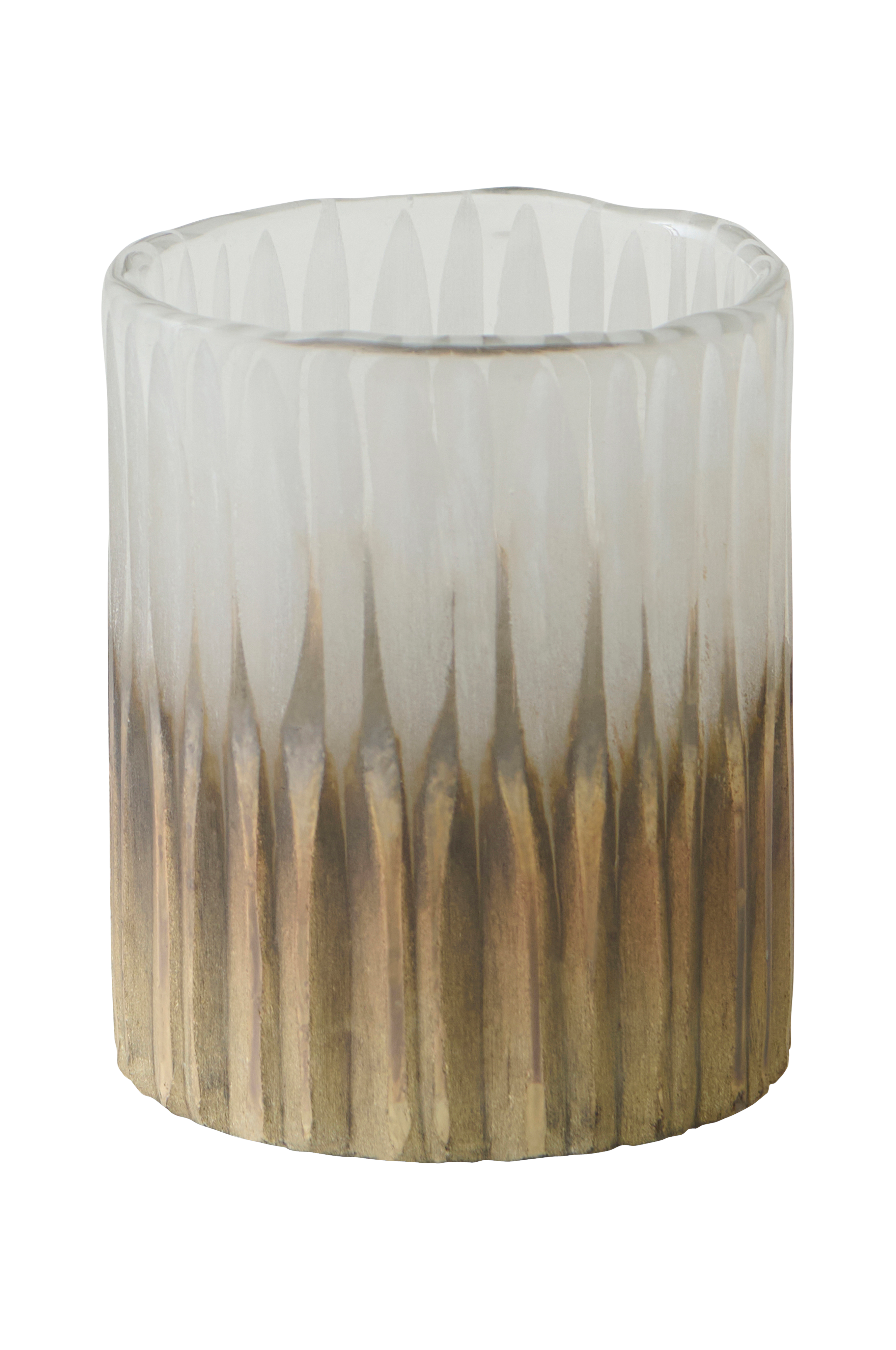 Käsintehty kynttilälyhty lasia, jossa huurrettu struktuuripinta. Korkeus 10 cm, halkaisija 8 cm.