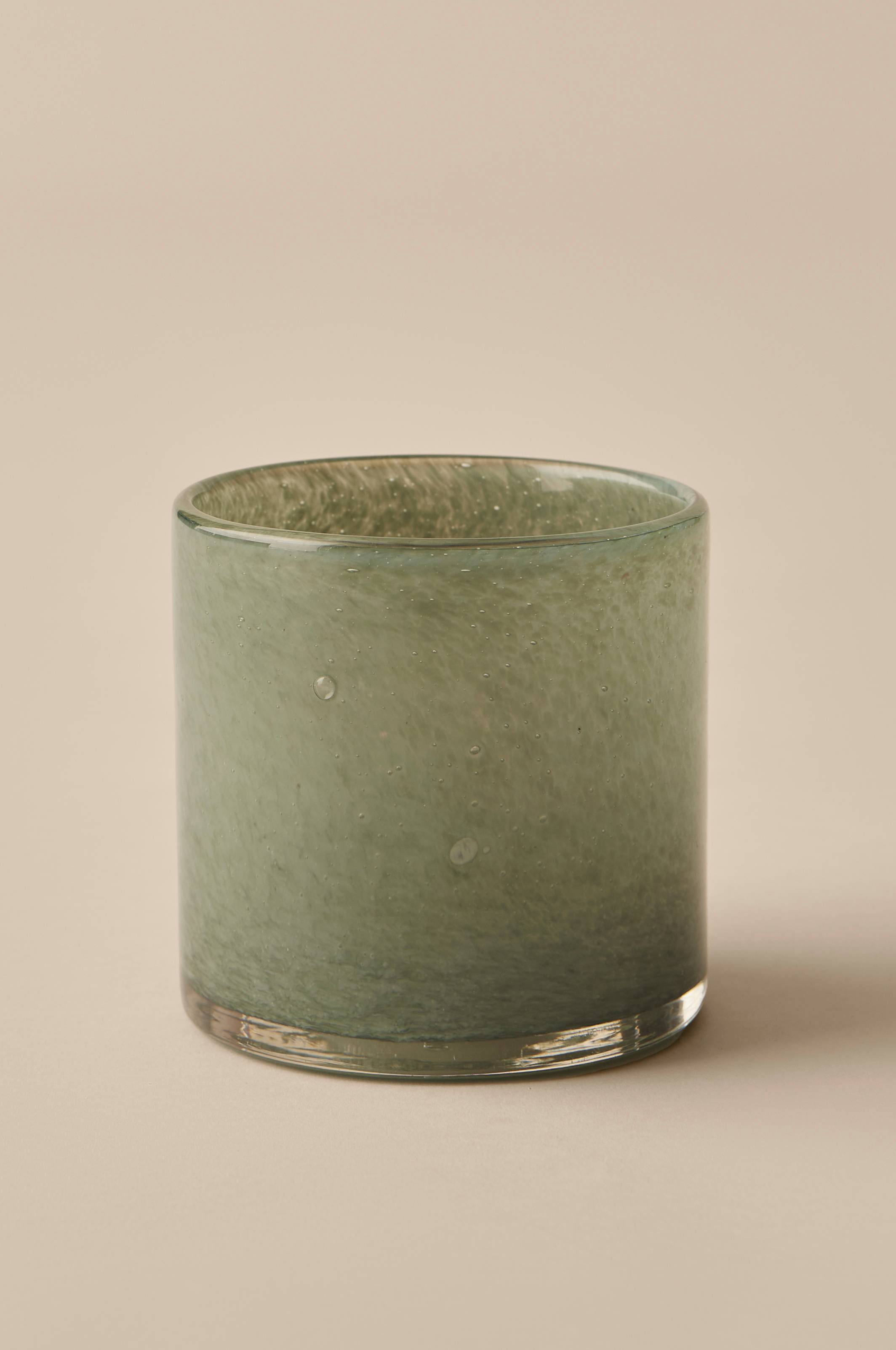 Kynttilälyhty tai pieni ruukku lasia. Kauniit sävyvaihtelut ja lasikuplat luovat upean vaikutelman ja tunnelmallisen valon. Tekniikka saa aikaan epätasaisuuksia ja sävyvaihteluita ja jokainen kynttilälyhty on ainutlaatuinen. Korkeus n. 12 cm, Ø n. 12 cm. Puhdistus käsin.