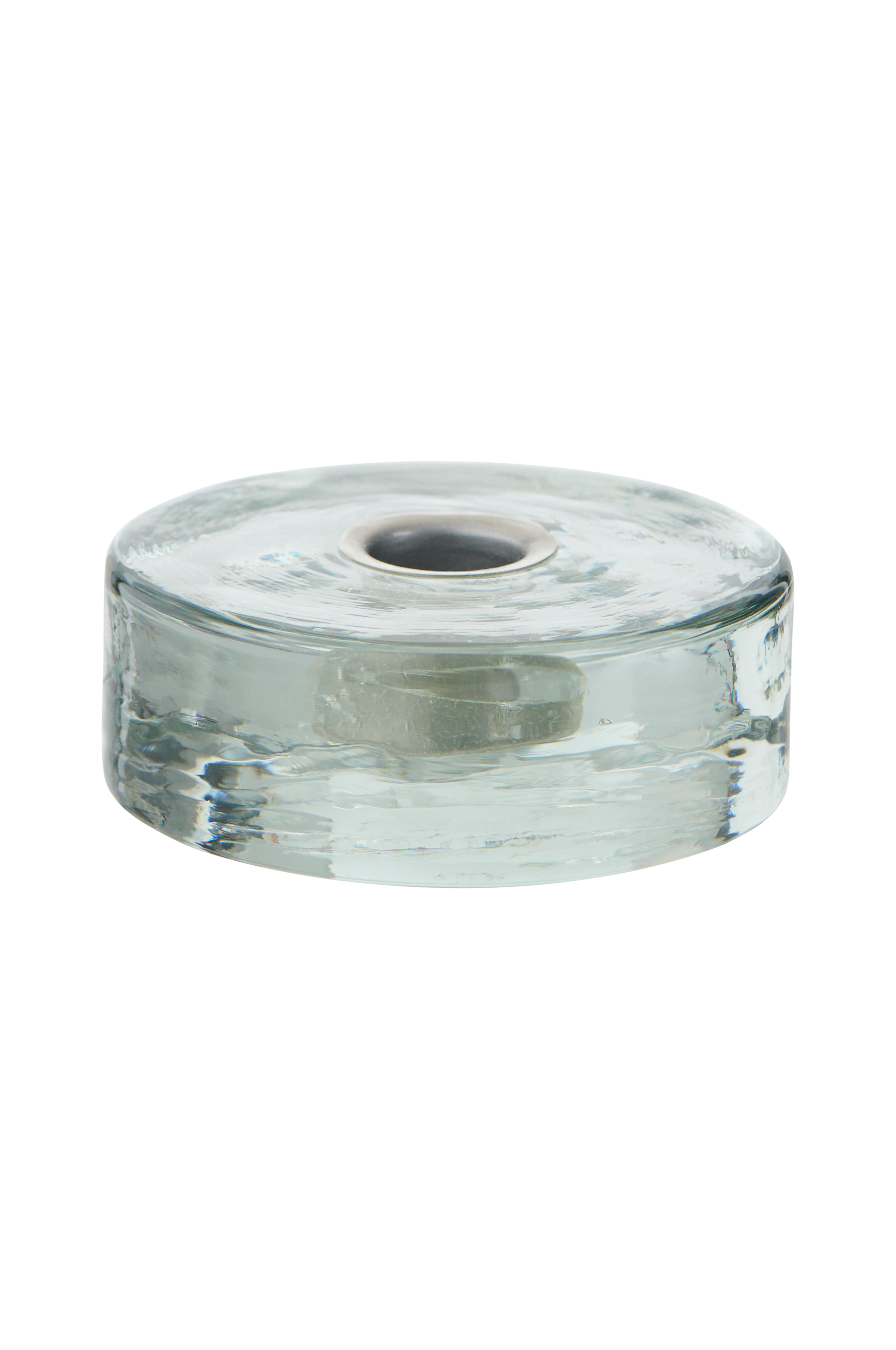 • Pyöreä kynttilänjalka lasista kynttilänpidikkeellä metallista