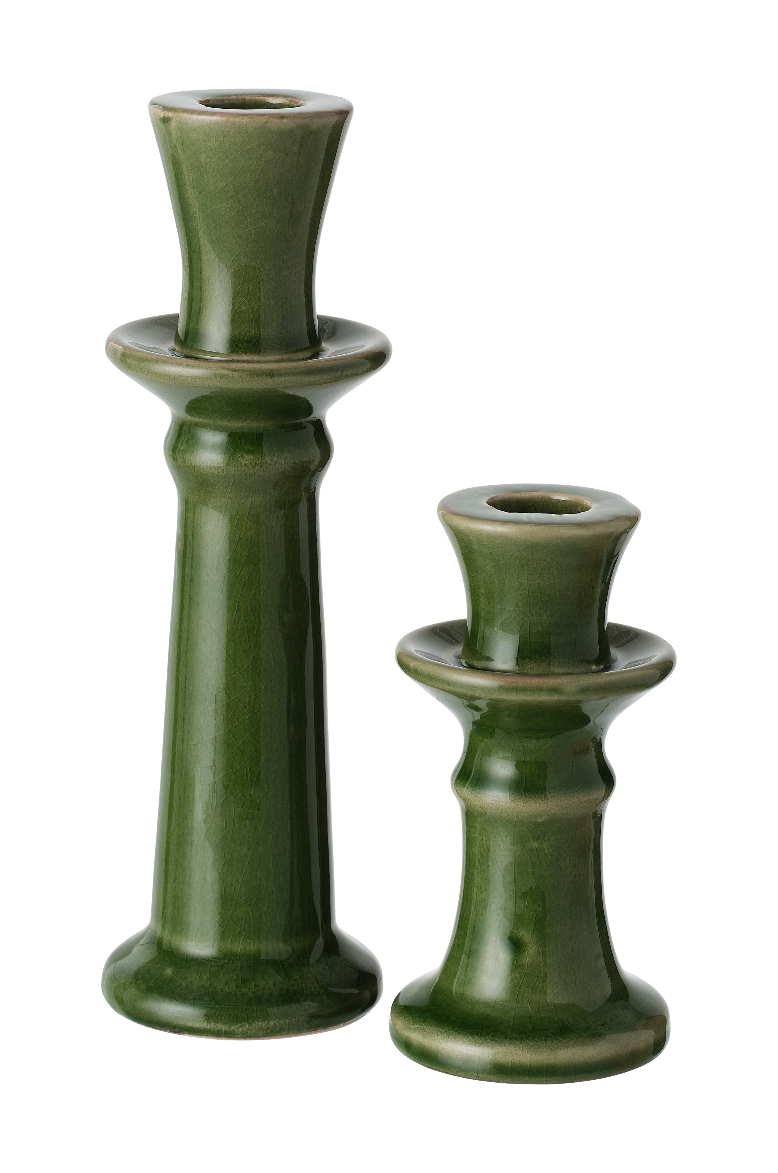 • Kaksi kynttilänjalkaa kiiltävästä keramiikasta.