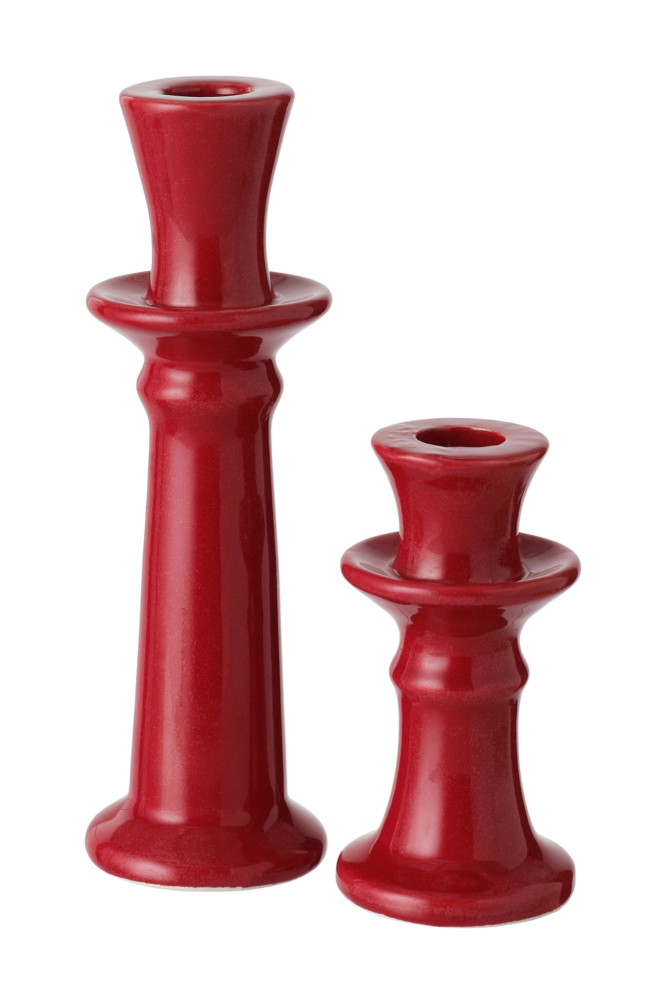 • Kaksi kynttilänjalkaa kiiltävästä keramiikasta.