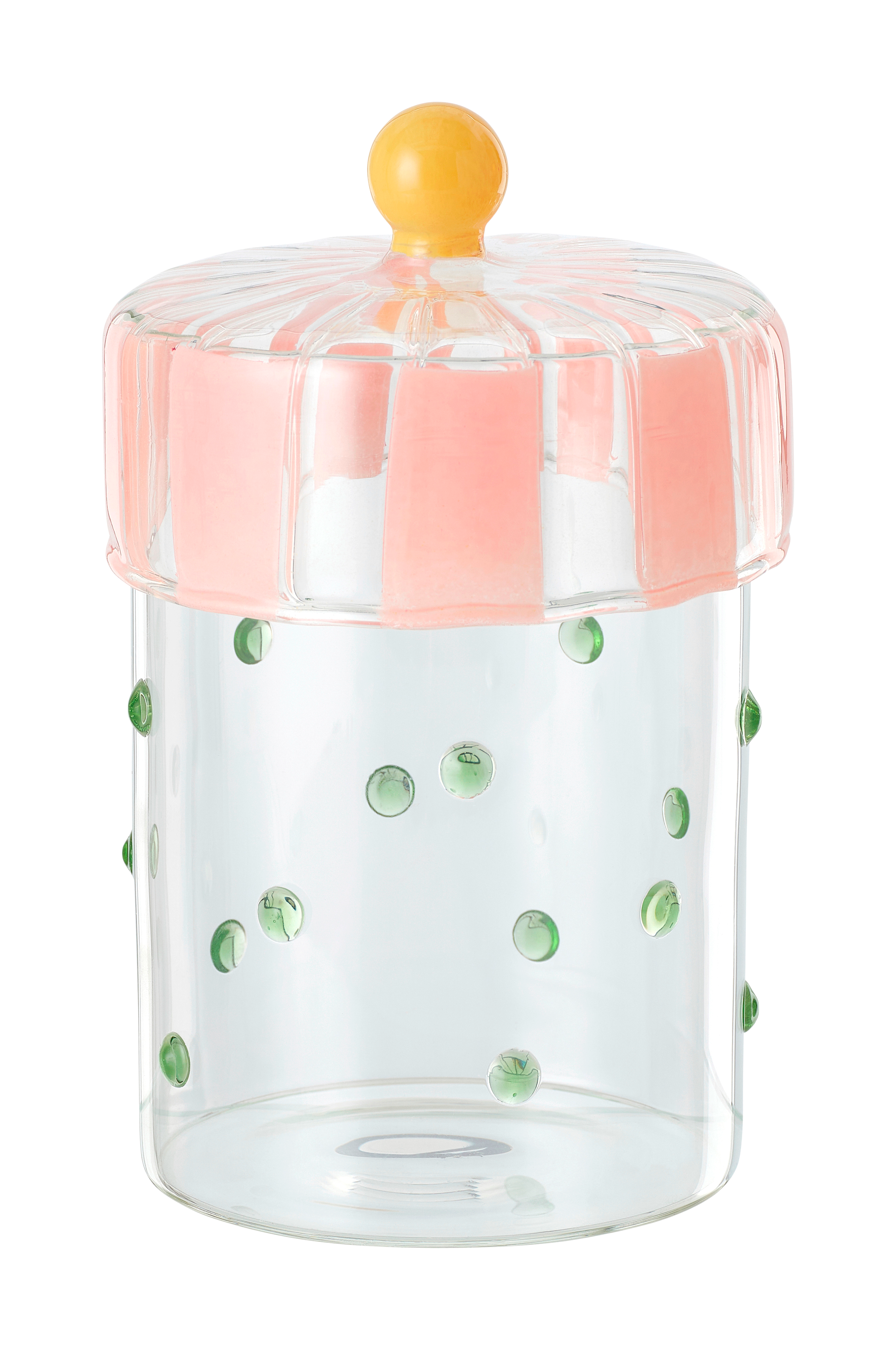 • Kannellinen lasipurkki, kuvioitua värillistä lasia