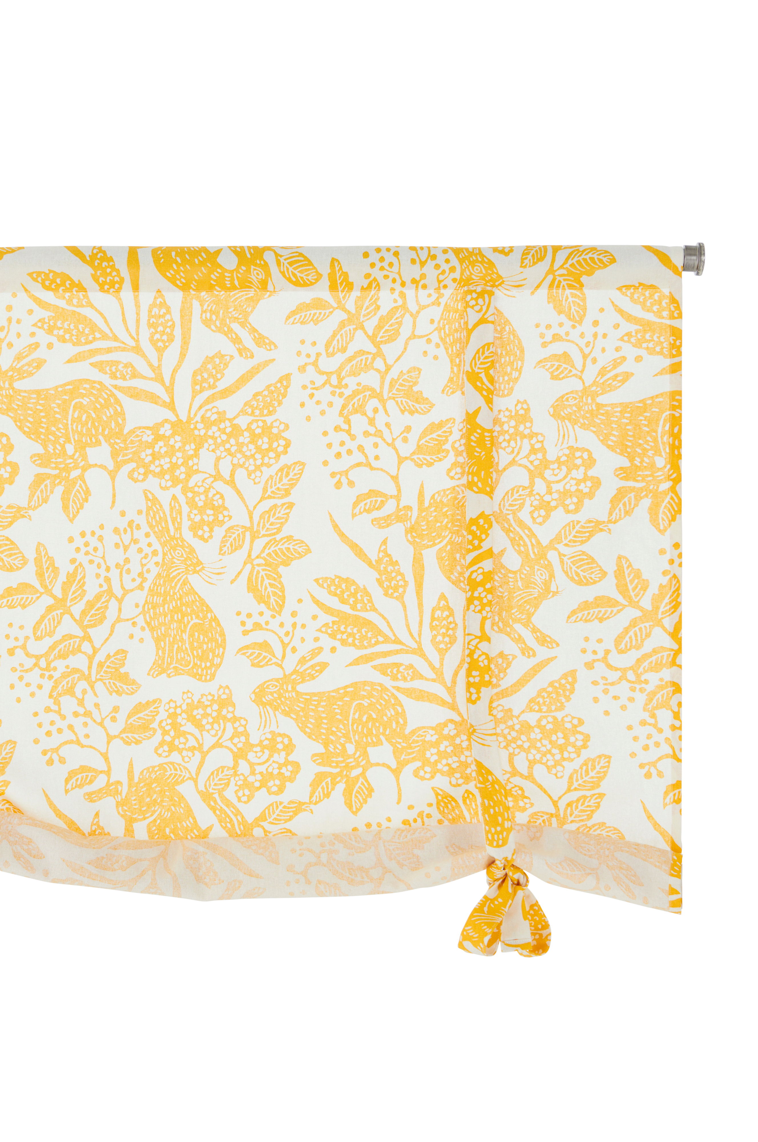 - Puuvillainen rullautuva laskosverho, jossa painettu kuvio ja solmimisnauhat