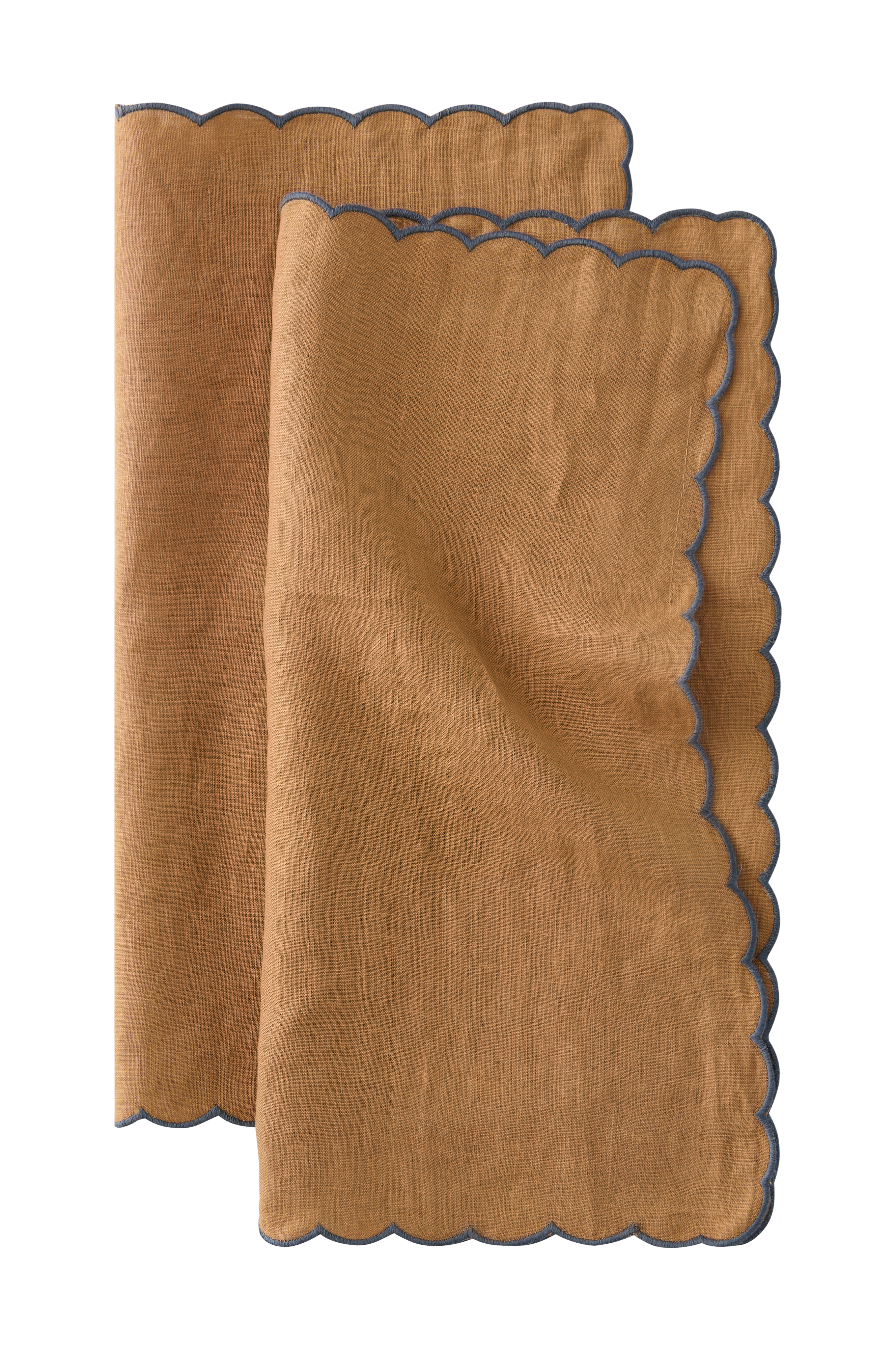 Lautasliinat eläväpintaista pestyä pellavaa, 2/pakkaus. Kaarimainen reuna, jossa kontrastivärinen overlock-ommel ympäriinsä.