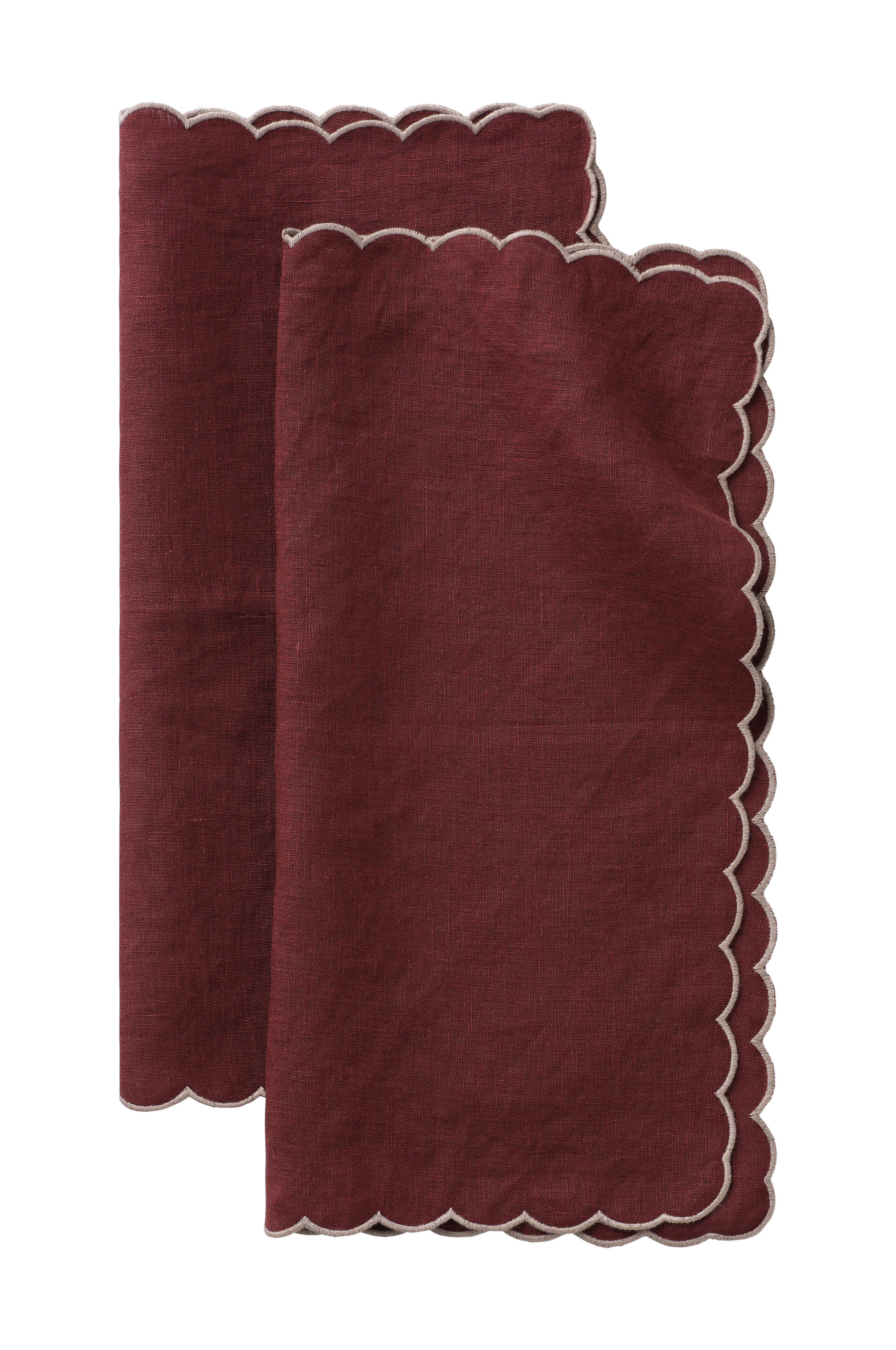 Lautasliinat eläväpintaista pestyä pellavaa, 2/pakkaus. Kaarimainen reuna, jossa kontrastivärinen overlock-ommel ympäriinsä.
