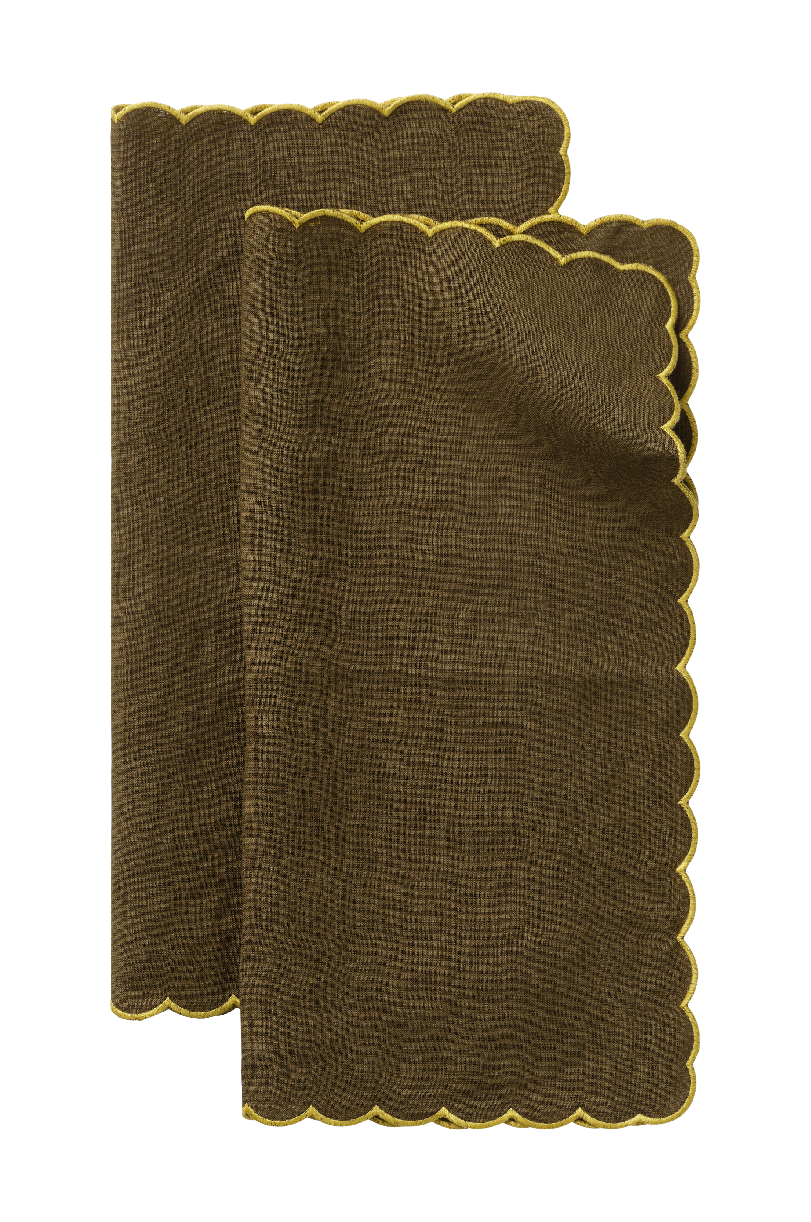 Lautasliinat eläväpintaista pestyä pellavaa, 2/pakkaus. Kaarimainen reuna, jossa kontrastivärinen overlock-ommel ympäriinsä.