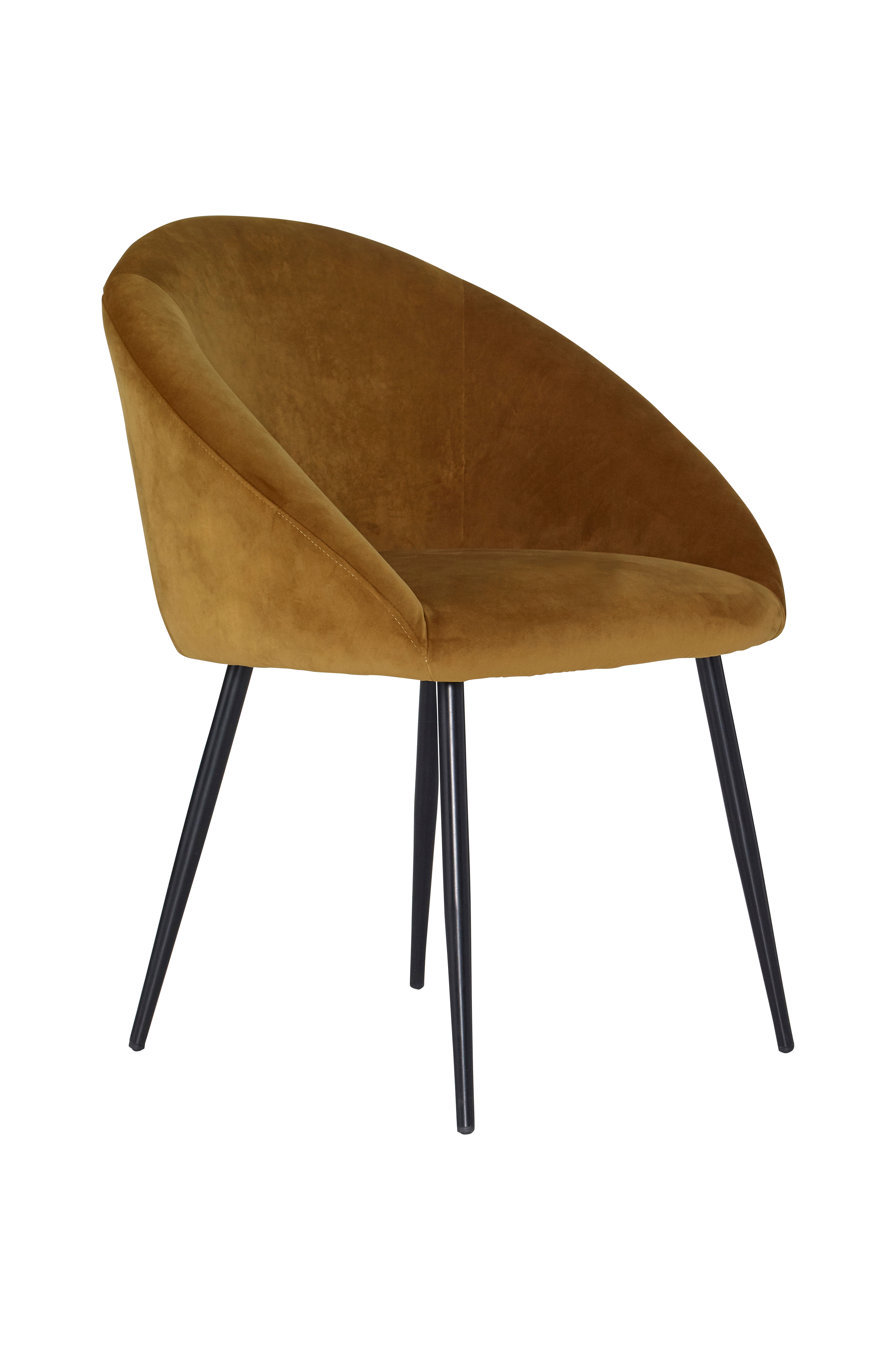 Puutuoli samettiverhoiluin. Jalat metallia. Vaahtomuovitäyte istuinosassa.