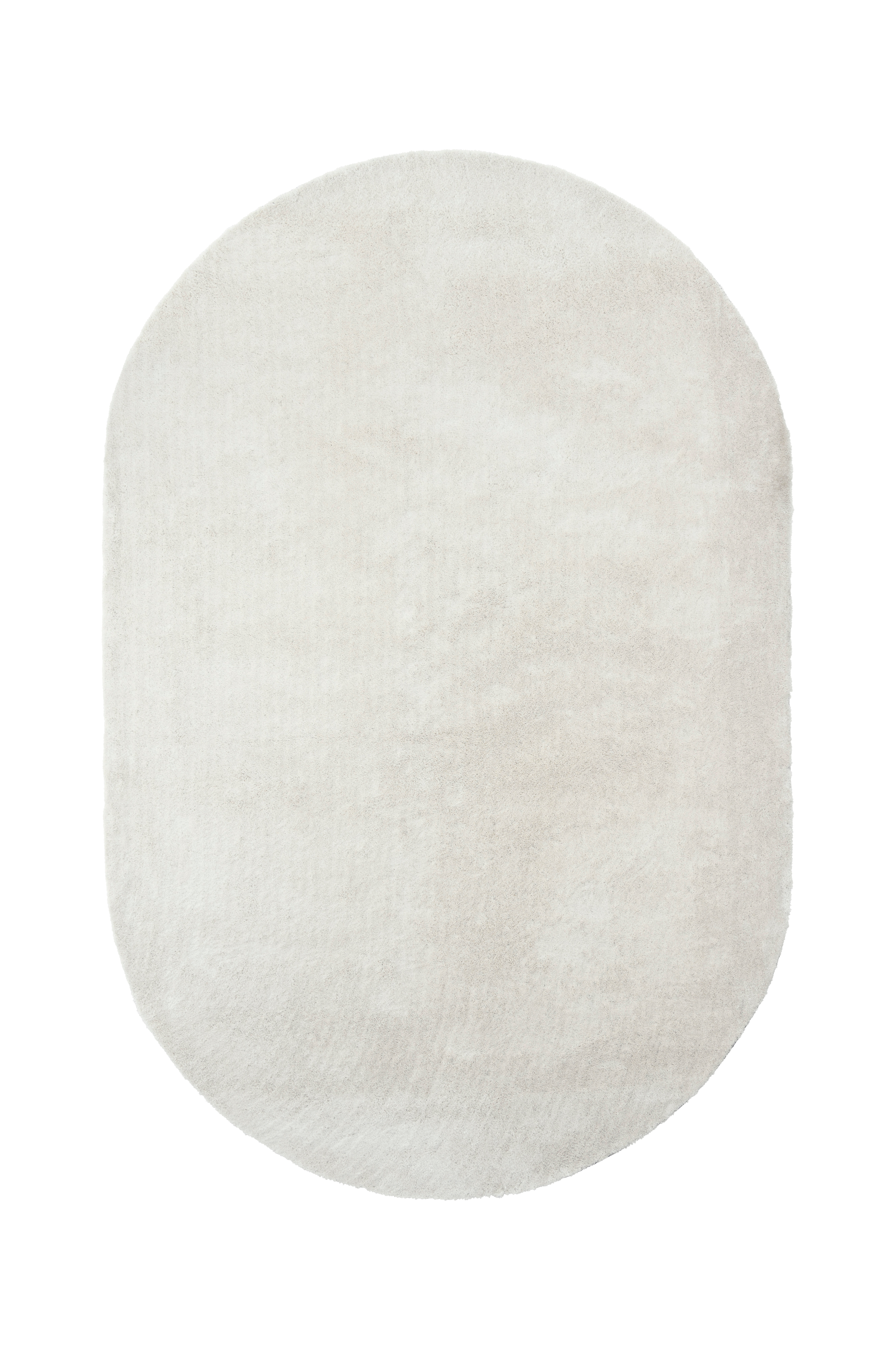 Soikea tuftattu matto pehmeää ja hohtavaa materiaalia. Paksuus 2 cm.