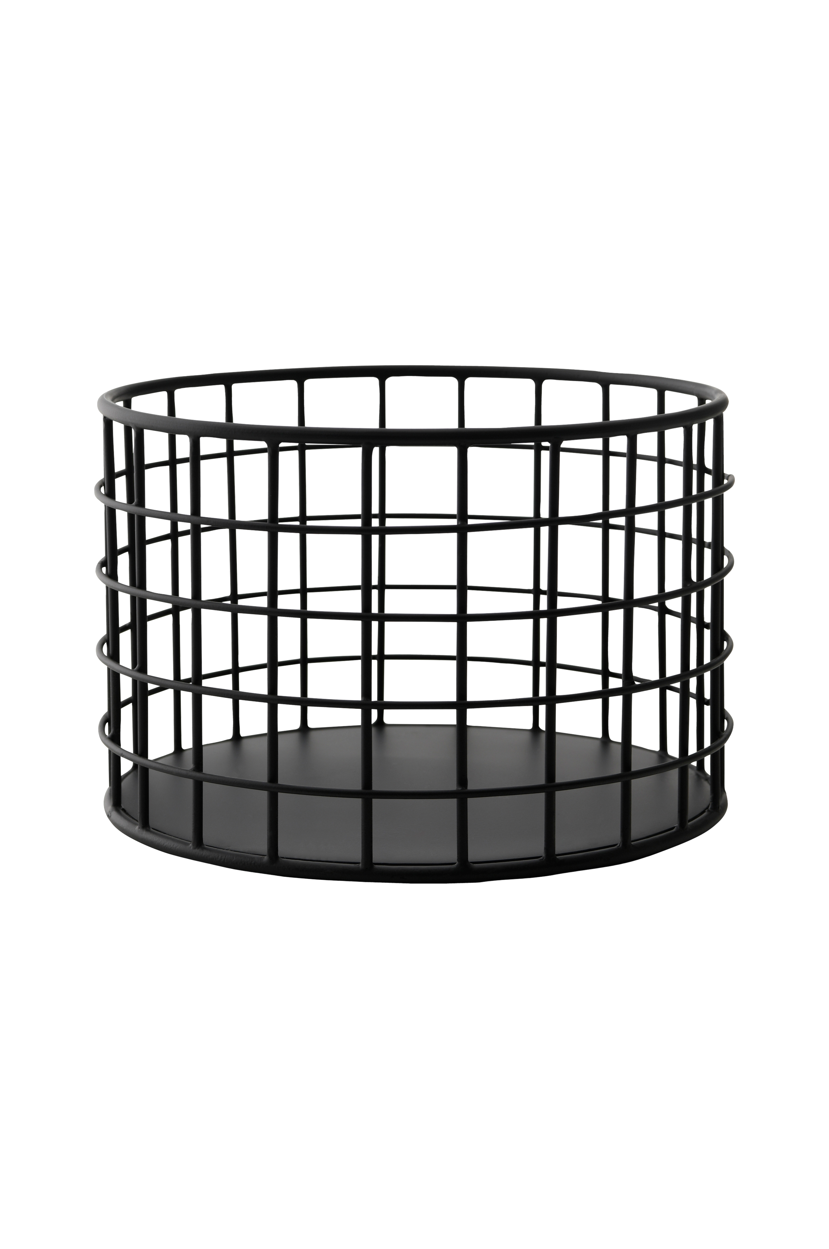 Metallinen säilytyskori, jossa pelkistetty ja tyylikäs muotoilu. Korkeus 17 cm, halkaisija 25,5 cm.