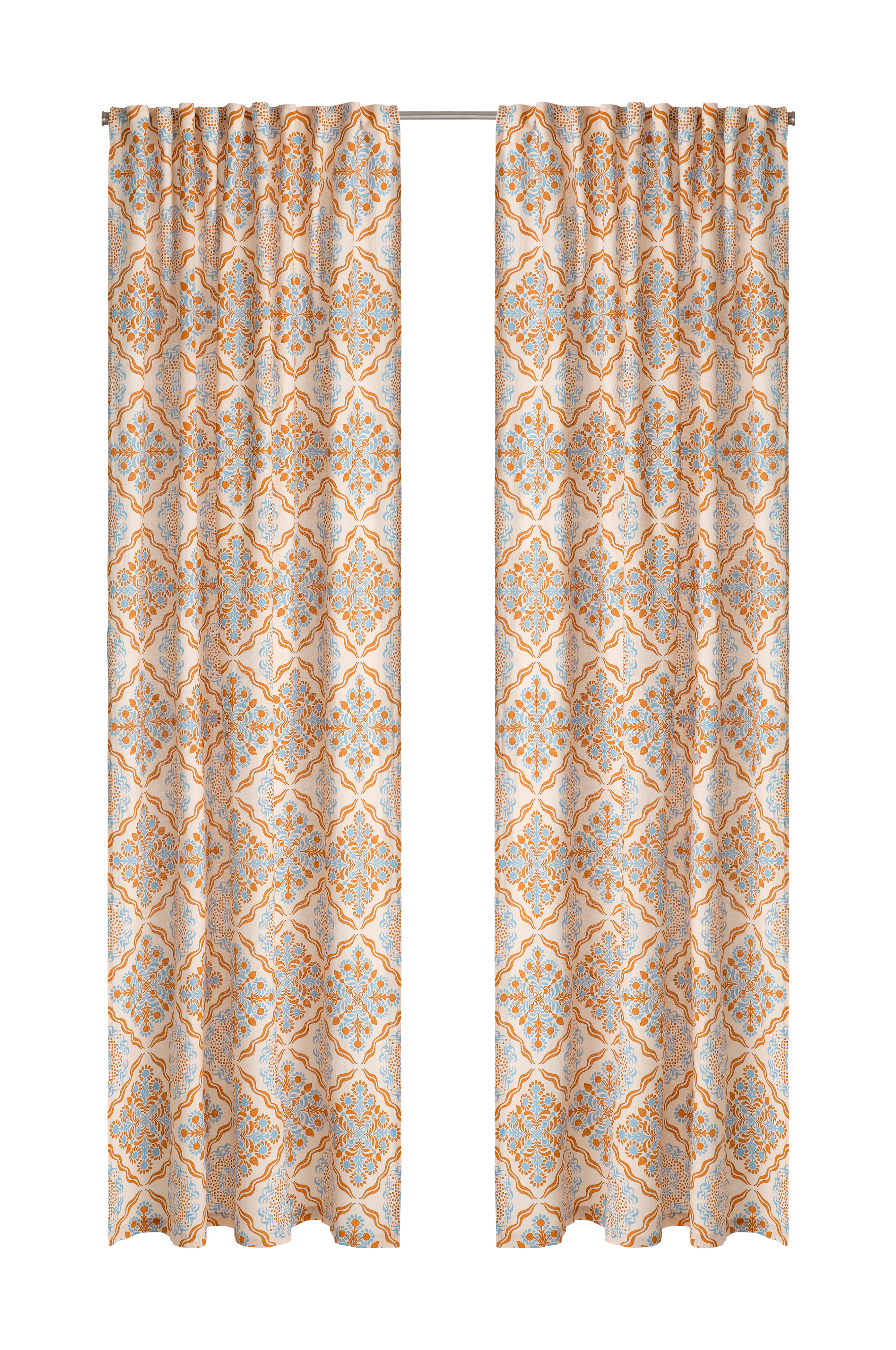 • Kaksi Monitoimiverhoa pellavasekoitteesta painetulla kuvioinnilla