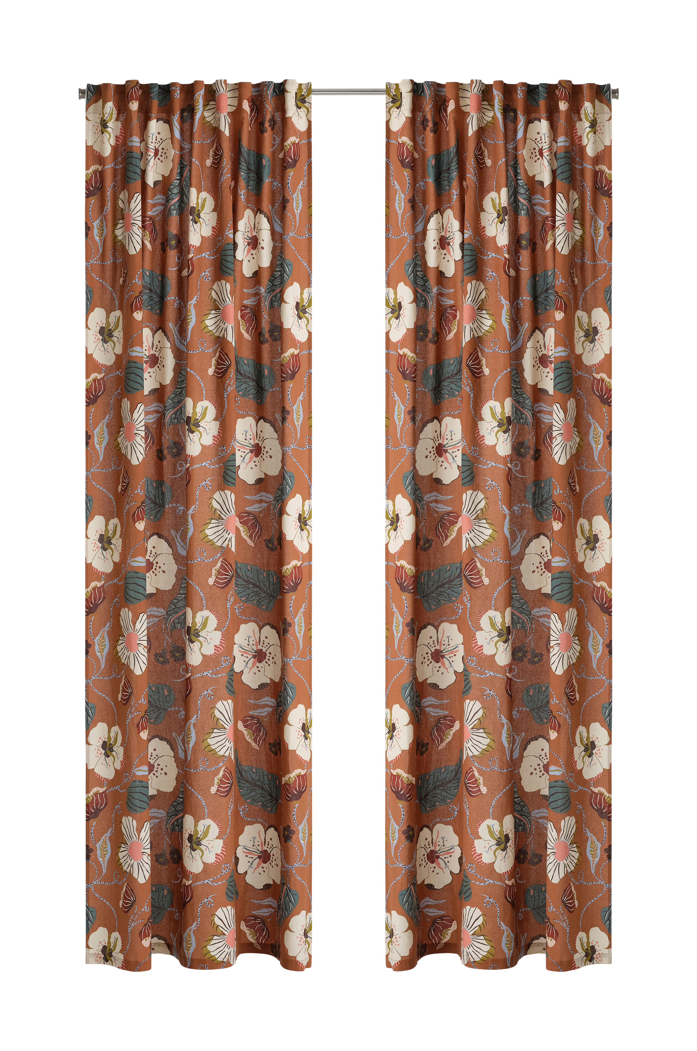 • Kaksi Monitoimiverhoa hieman vahvemmista puolipanamasta painetulla kukkakuviolla