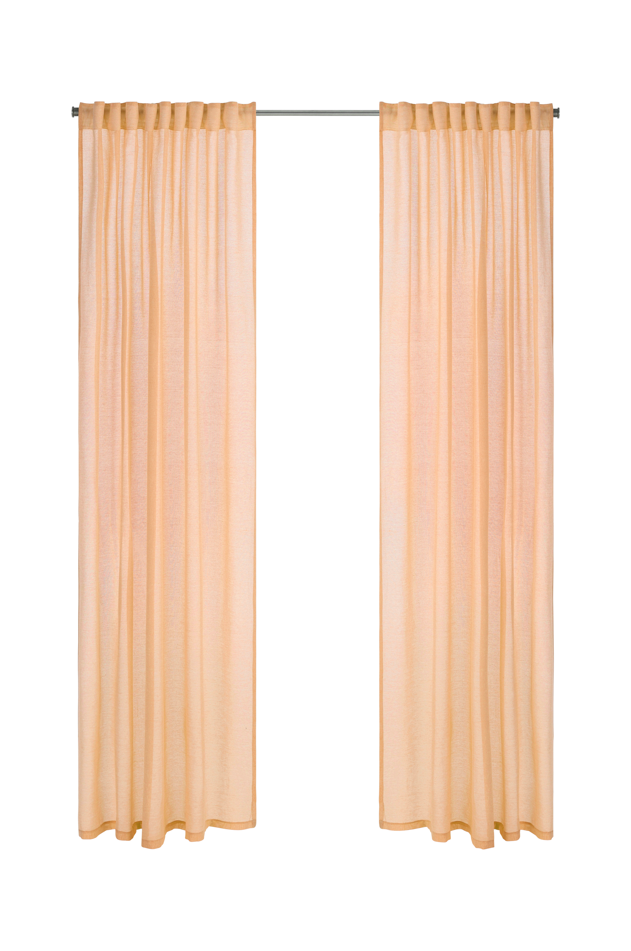 Kunnolliset vaaleanpunaiset verhot, jotka ovat hieman läpikuultavat. Aiomme käyttää niitä terassihuoneessa.