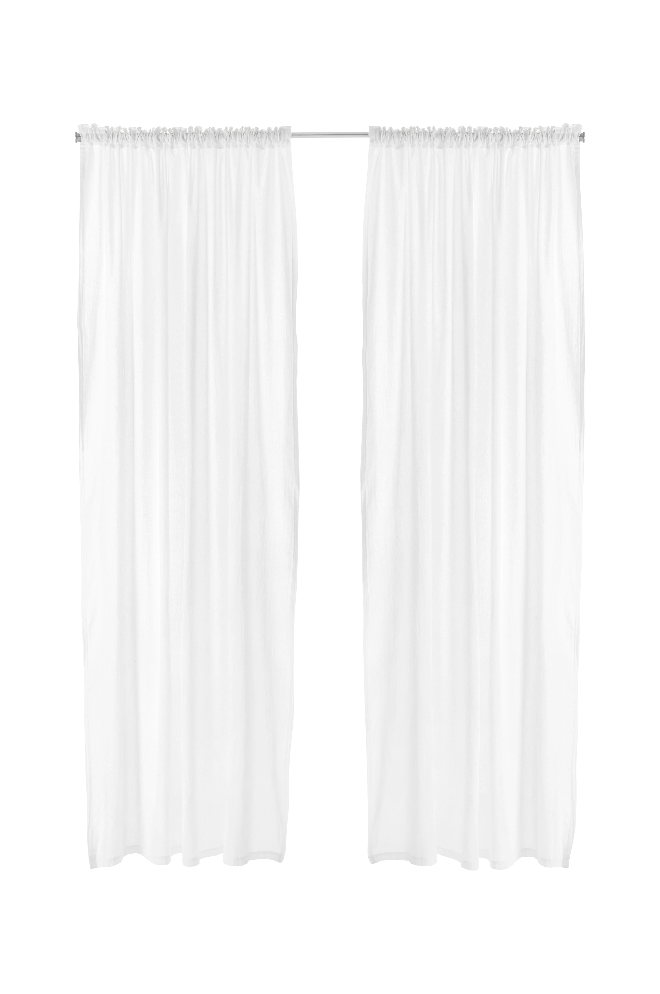 Kaksi monitoimiverhoa pehmeää, pestyä puuvillavoileeta. Verhoissa on monitoiminauha, jonka avulla ne voi pujottaa suoraan verhotankoon tai käyttää ripustamiseen rypytysnauhakoukkuja tai neulakoukkuja (ei sormikoukkuja). Rypytysnauhan nyöreillä saat helposti tasaiset ja kauniit laskokset. Leveys 145 cm. Saatavana kolme pituutta: 220, 250 ja 300 cm.