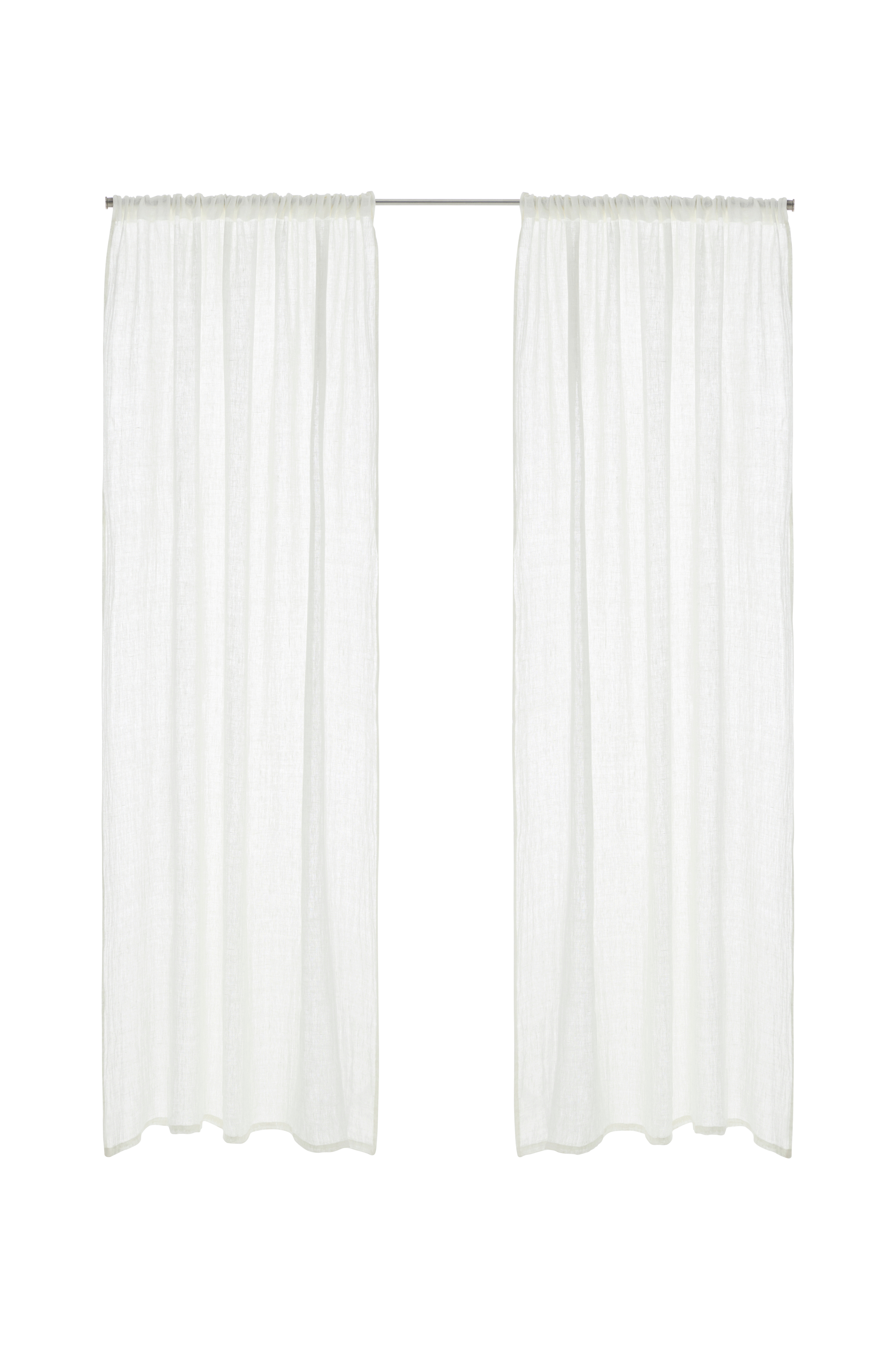 Kaksi monitoimiverhoa pestyä, harvaan kudottua pellavaa. Monitoiminauhan ansiosta verhot voi ripustaa suoraan verhotankoon tai käyttää renkaita ja neulakoukkuja (ei sormikoukkuja). Rypytysnauhan nyöreillä saat helposti tasaiset ja kauniit laskokset. Leveys 145 cm. Saatavana useita eri pituuksia.