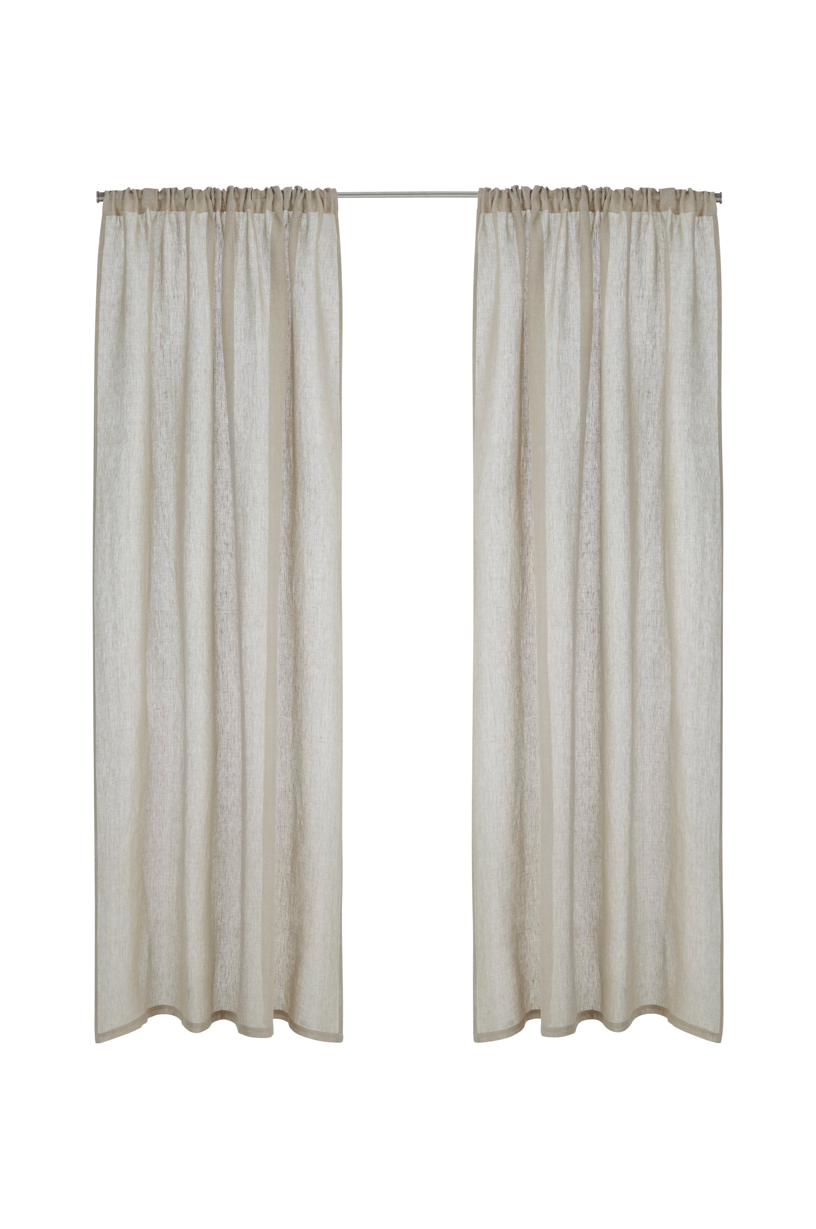 Kaksi monitoimiverhoa pestyä, harvaan kudottua pellavaa. Monitoiminauhan ansiosta verhot voi ripustaa suoraan verhotankoon tai käyttää renkaita ja neulakoukkuja (ei sormikoukkuja). Rypytysnauhan nyöreillä saat helposti tasaiset ja kauniit laskokset. Leveys 145 cm. Saatavana useita eri pituuksia.