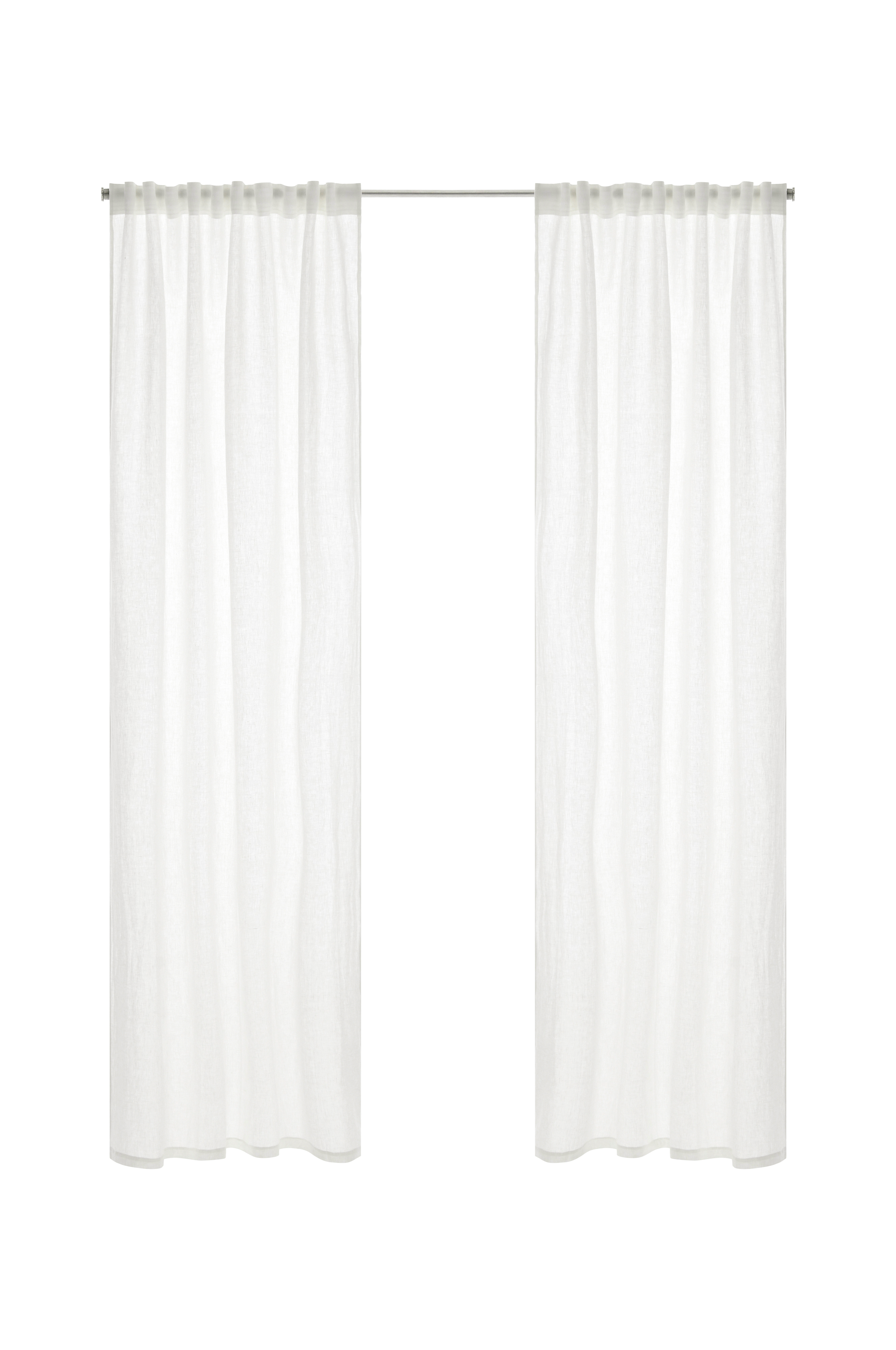 Kaksi monitoimiverhoa pestyä, eläväpintaista pellavaa. Monitoiminauhan ansiosta verhot voidaan ripustaa piilolenkkien avulla suoraan verhotankoon tai käyttää ripustamiseen renkaita, neulakoukkuja tai sormikoukkuja. Poimutusnauhan nyöreillä saat helposti tasaiset ja kauniit laskokset. Voidaan käyttää myös keräilykoukun kanssa. Leveys 135 cm. Saatavana useita pituuksia.