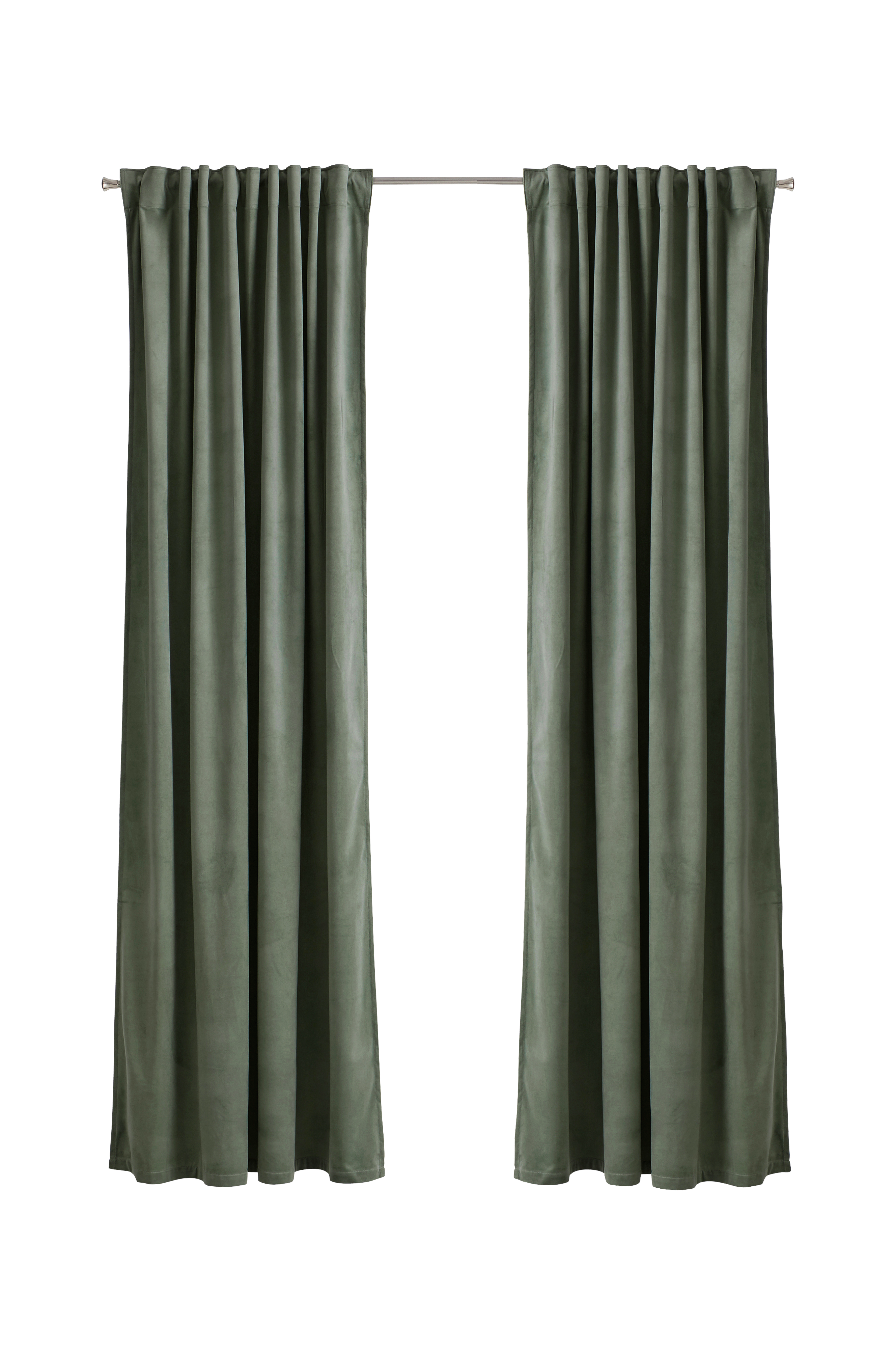 Kaksi monitoimiverhoa kauniisti hohtavaa ja pehmeästi laskeutuvaa samettia. Monitoiminauhan ansiosta verhot voidaan ripustaa piilolenkkien avulla suoraan verhotankoon tai käyttää ripustamiseen renkaita, neulakoukkuja tai sormikoukkuja. Rypytysnauhan nyöreillä saat helposti tasaiset ja kauniit laskokset. Leveys 140 cm. Kolme pituutta: 220, 250 ja 300 cm.