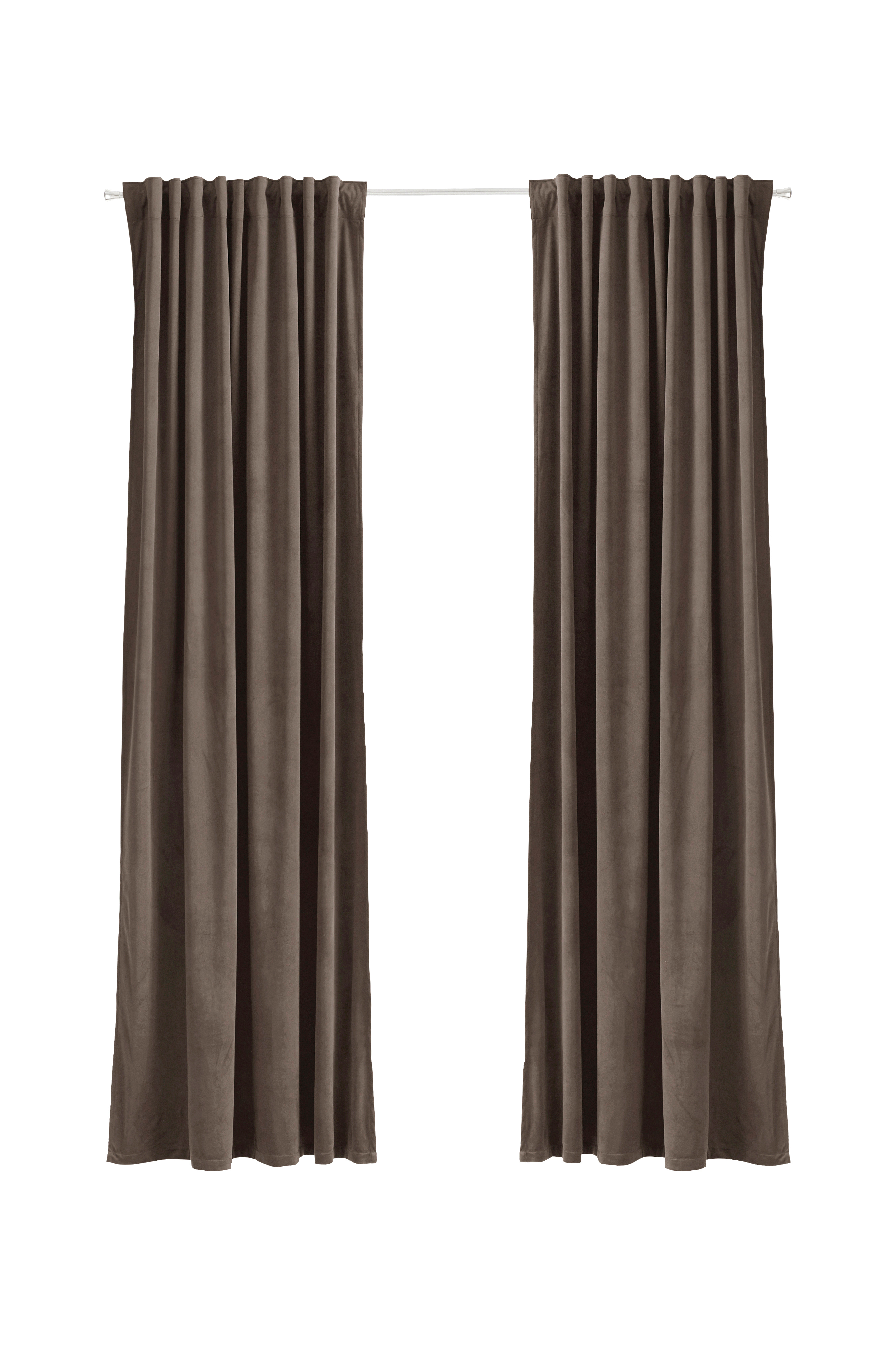 Kaksi monitoimiverhoa kauniisti hohtavaa ja pehmeästi laskeutuvaa samettia. Monitoiminauhan ansiosta verhot voidaan ripustaa piilolenkkien avulla suoraan verhotankoon tai käyttää ripustamiseen renkaita, neulakoukkuja tai sormikoukkuja. Rypytysnauhan nyöreillä saat helposti tasaiset ja kauniit laskokset. Leveys 140 cm. Kolme pituutta: 220, 250 ja 300 cm.