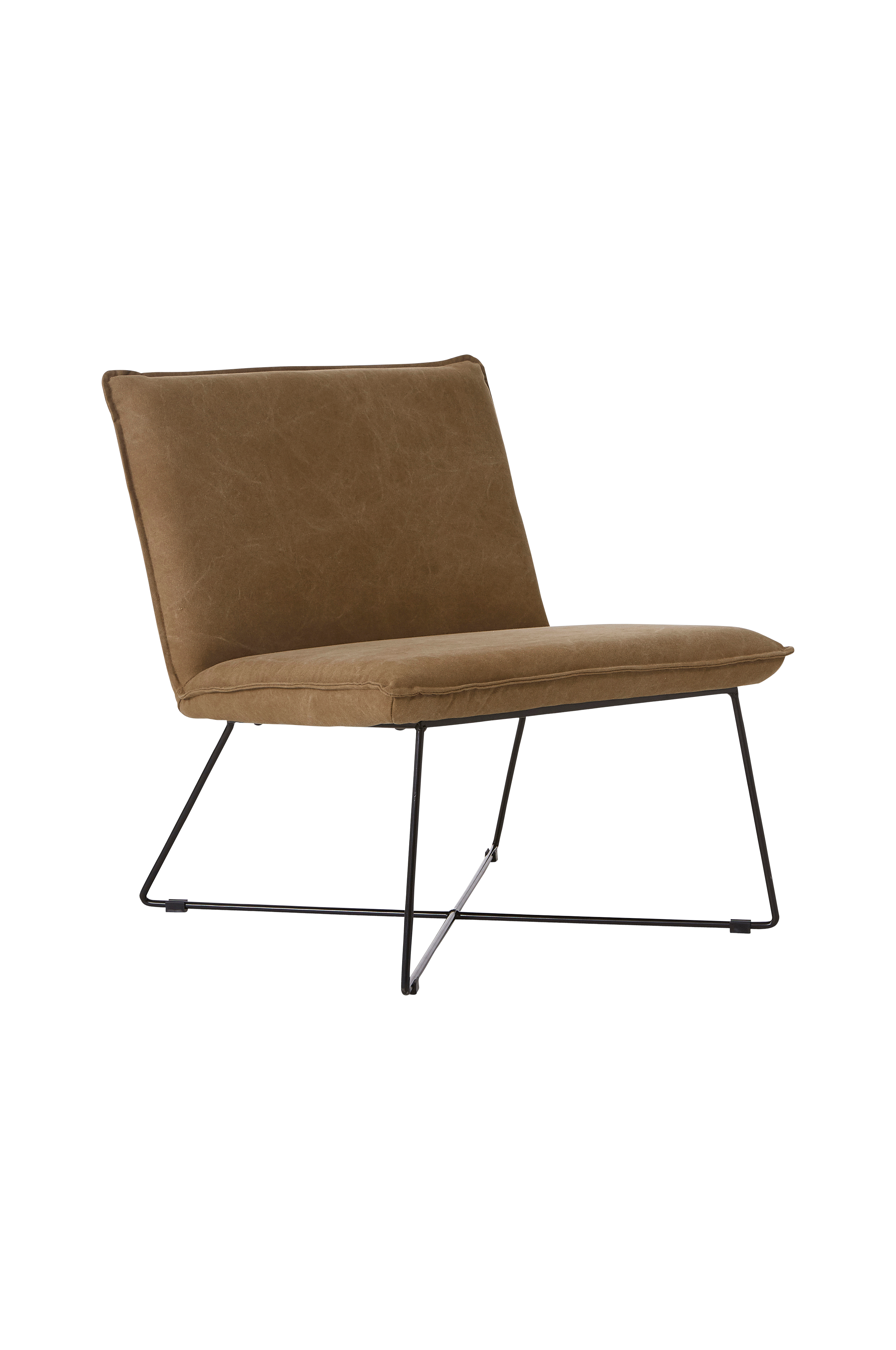 Nojatuoli, jossa metallirunko ja päällinen kanvaasia. Vaahtomuovitäyte.