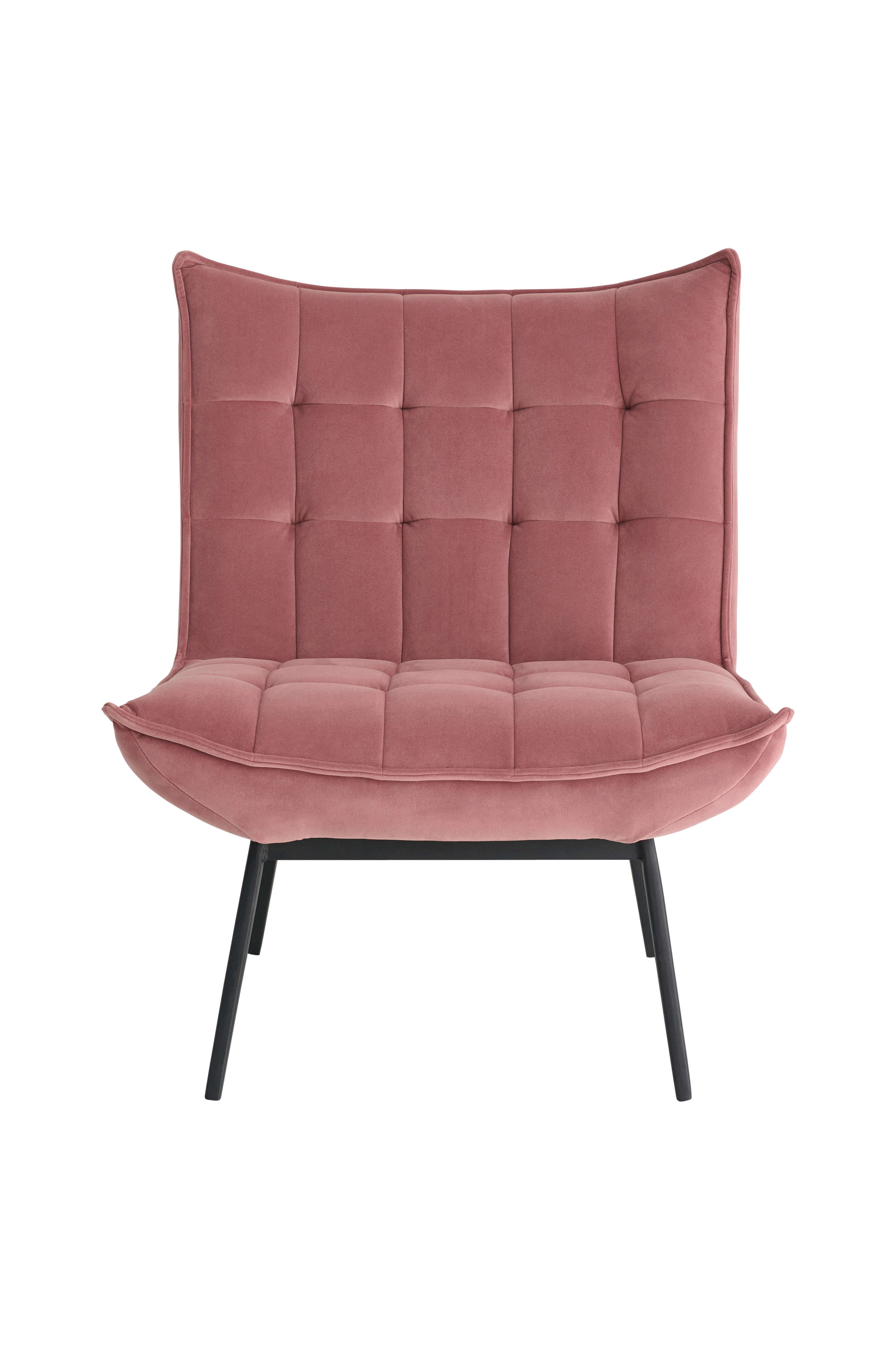 Nojatuolissa on terenauhareuna ympäriinsä. Syvät tikkaukset muodostavat koristeellisen ruutukuvion. Vaahtotäyte. Metallijalat. Helppo koota.