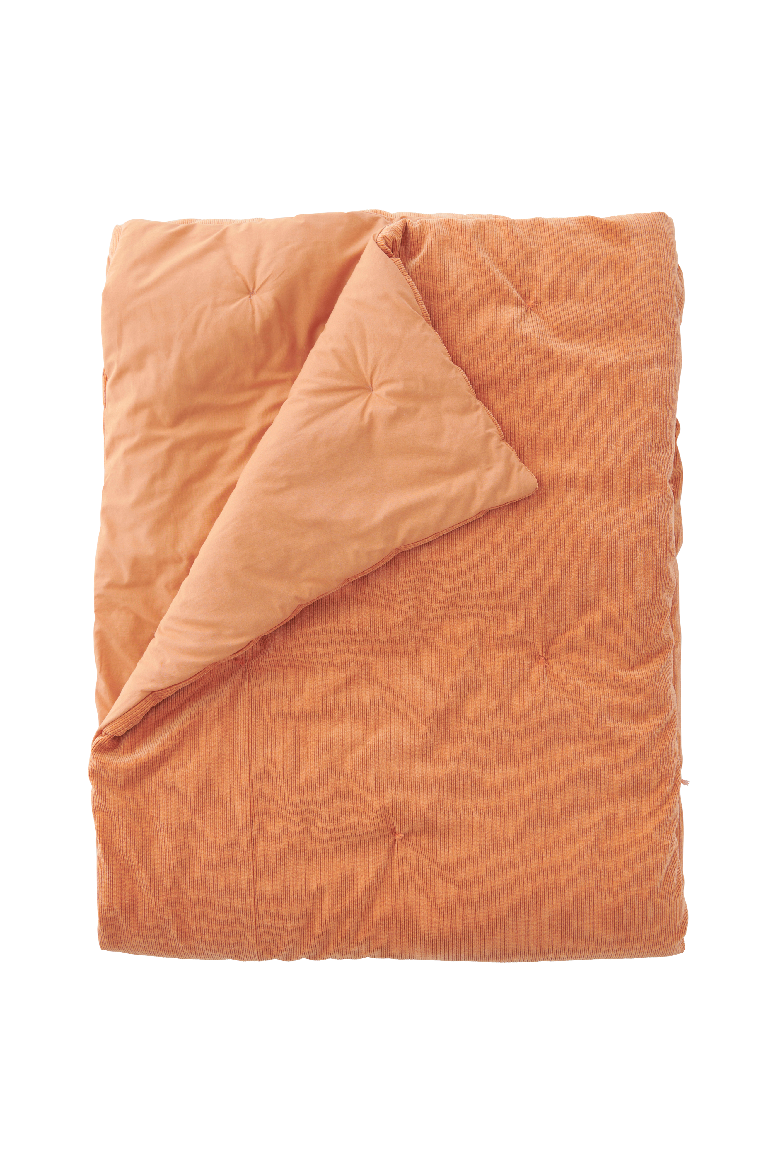 Tikattu päiväpeite pehmeää vakosamettia. Pienet tupsut. Sileä takaosa puuvillaa.