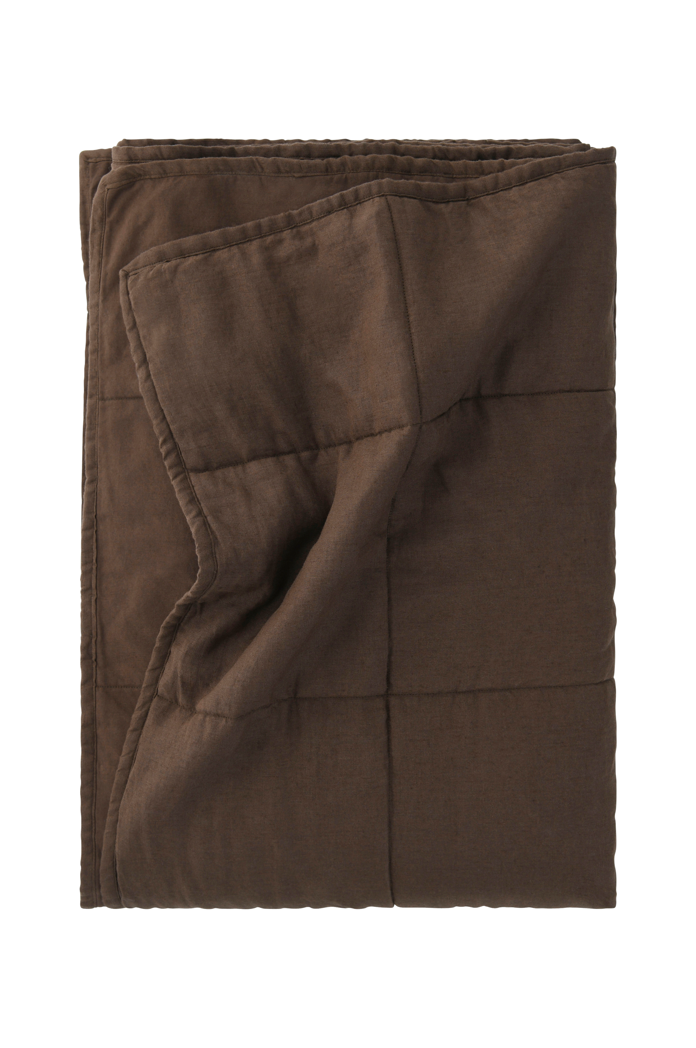 Kevyt, ruututikattu päiväpeite, jonka yläpuoli pestyä pellavaa. Taustapuoli puuvillaa.