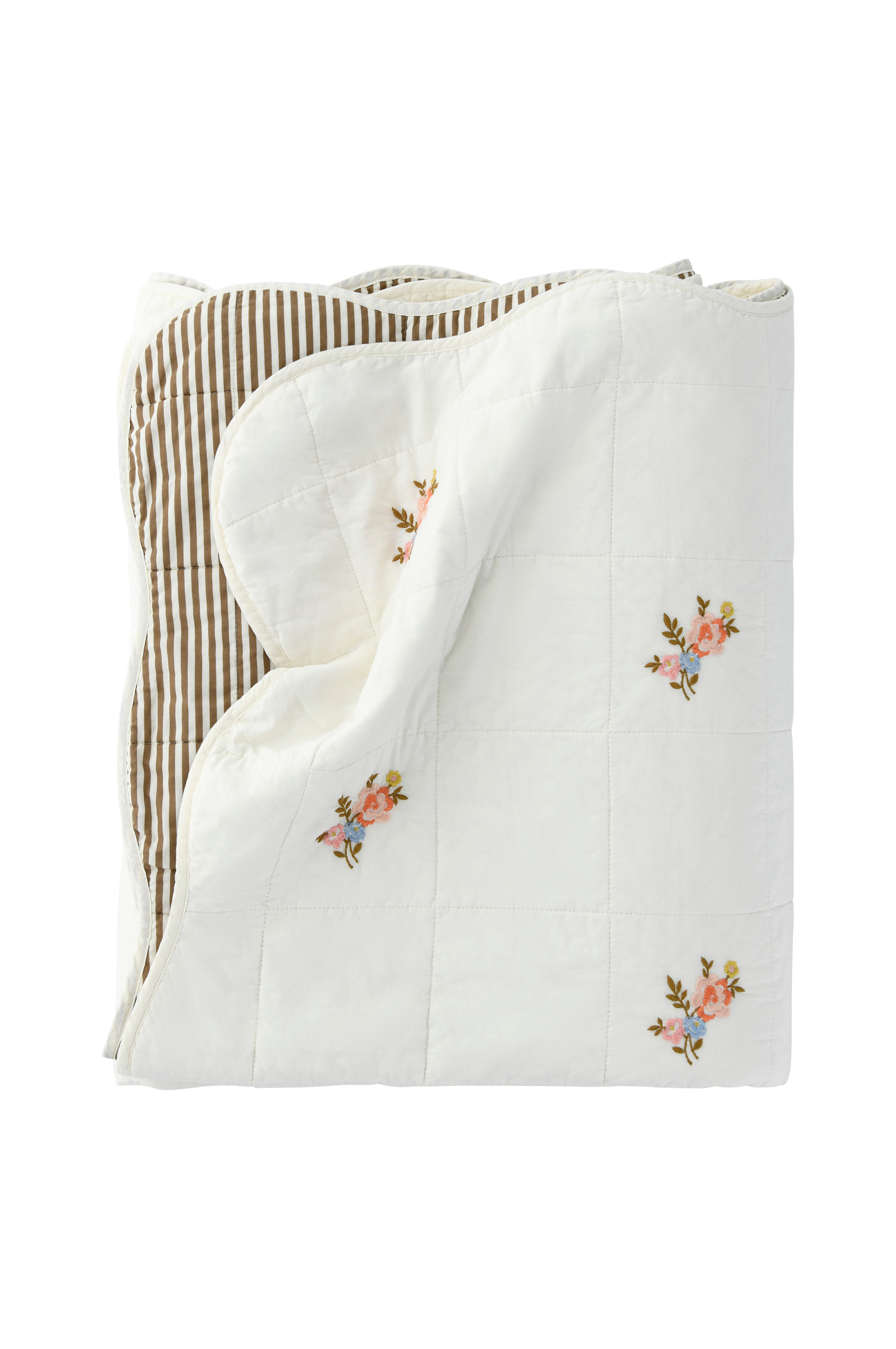 Erittäin tyytyväinen tähän puuvillan päiväpeitteeseen, jossa on pieniä kukkia brodeerattu.