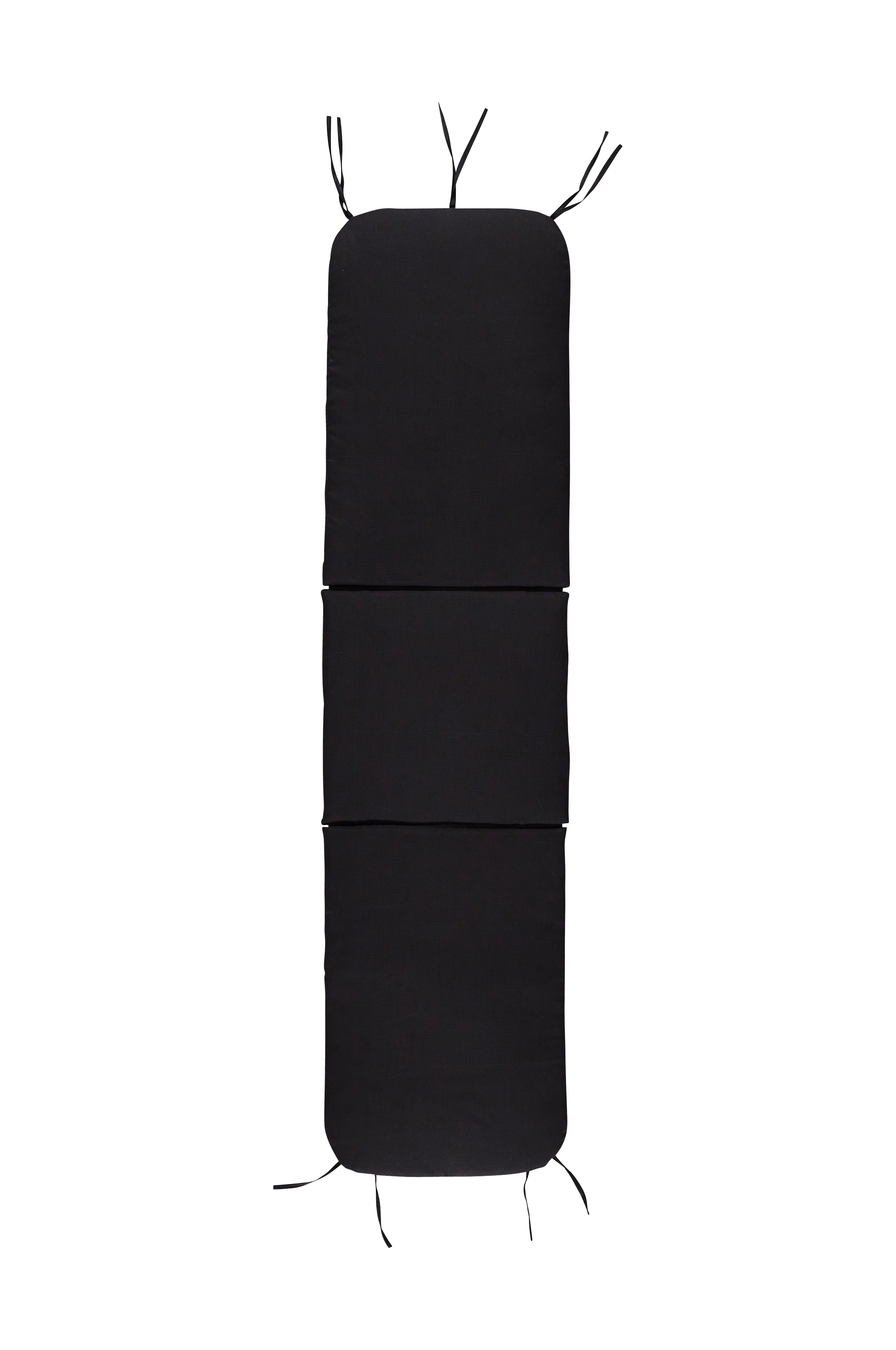 Pehmuste, joka sopii Elloksen Tobago-aurinkovuoteeseen. Päällinen puuvillaa, toppaus vaahtomuovia. Takana useita solmimisnauhoja, joilla pehmuste kiinnitetään aurinkovuoteeseen. Mitat 213x51 cm. Paksuus n. 3 cm.