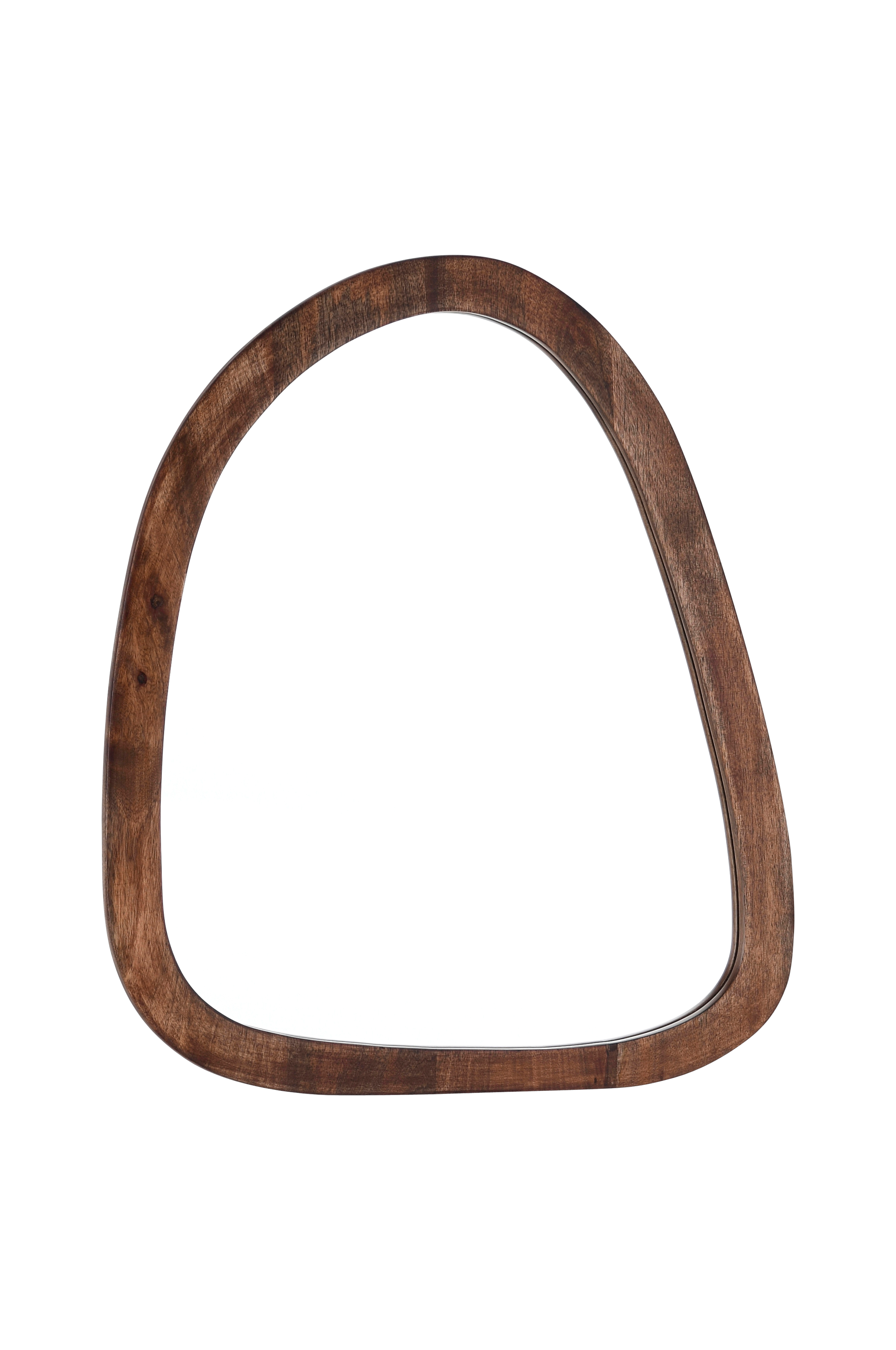 Seinäpeili, jossa pehmeä, orgaaninen ja epäsäännöllinen muoto. Kehys mangopuuta ja MDF-levyä. Kehyksen leveys 4,5 cm. Toimitetaan koottuna.
