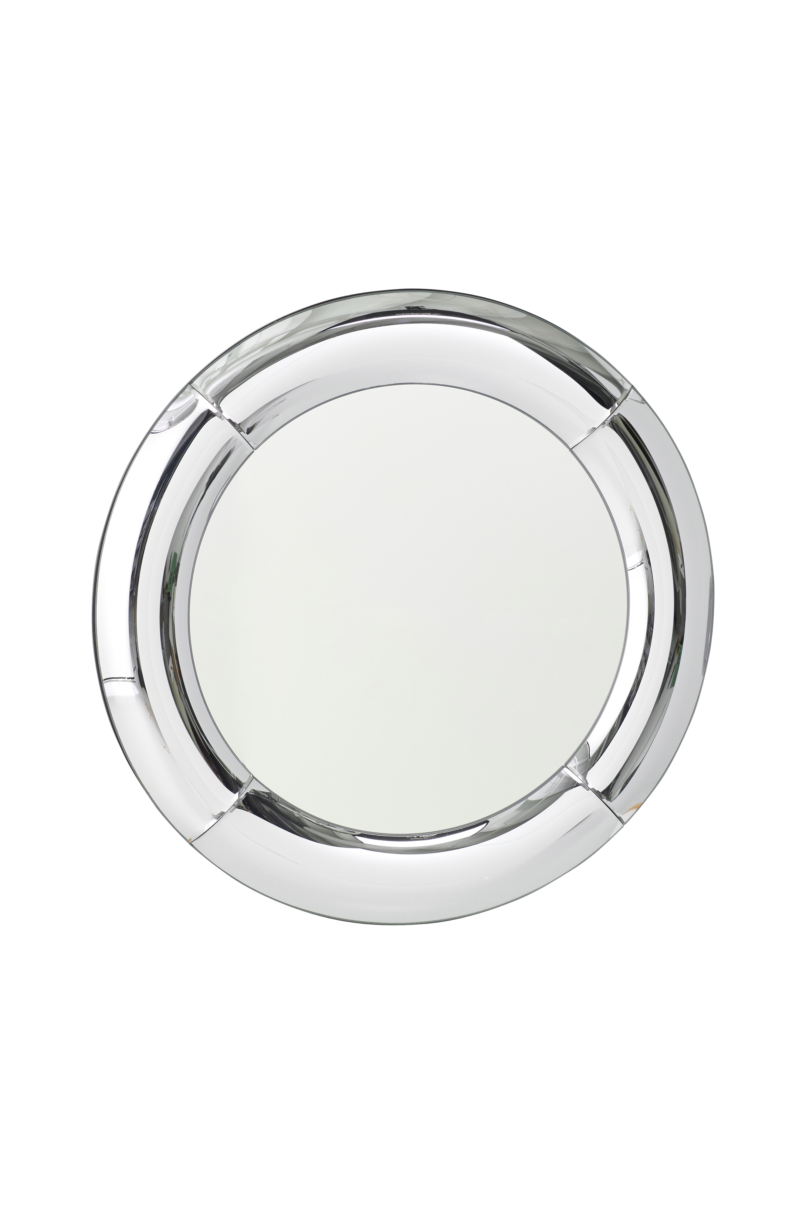 • Pyöreä peili leveillä kehyksillä kiiltävästä, hopeanvärisestä MDF-levystä