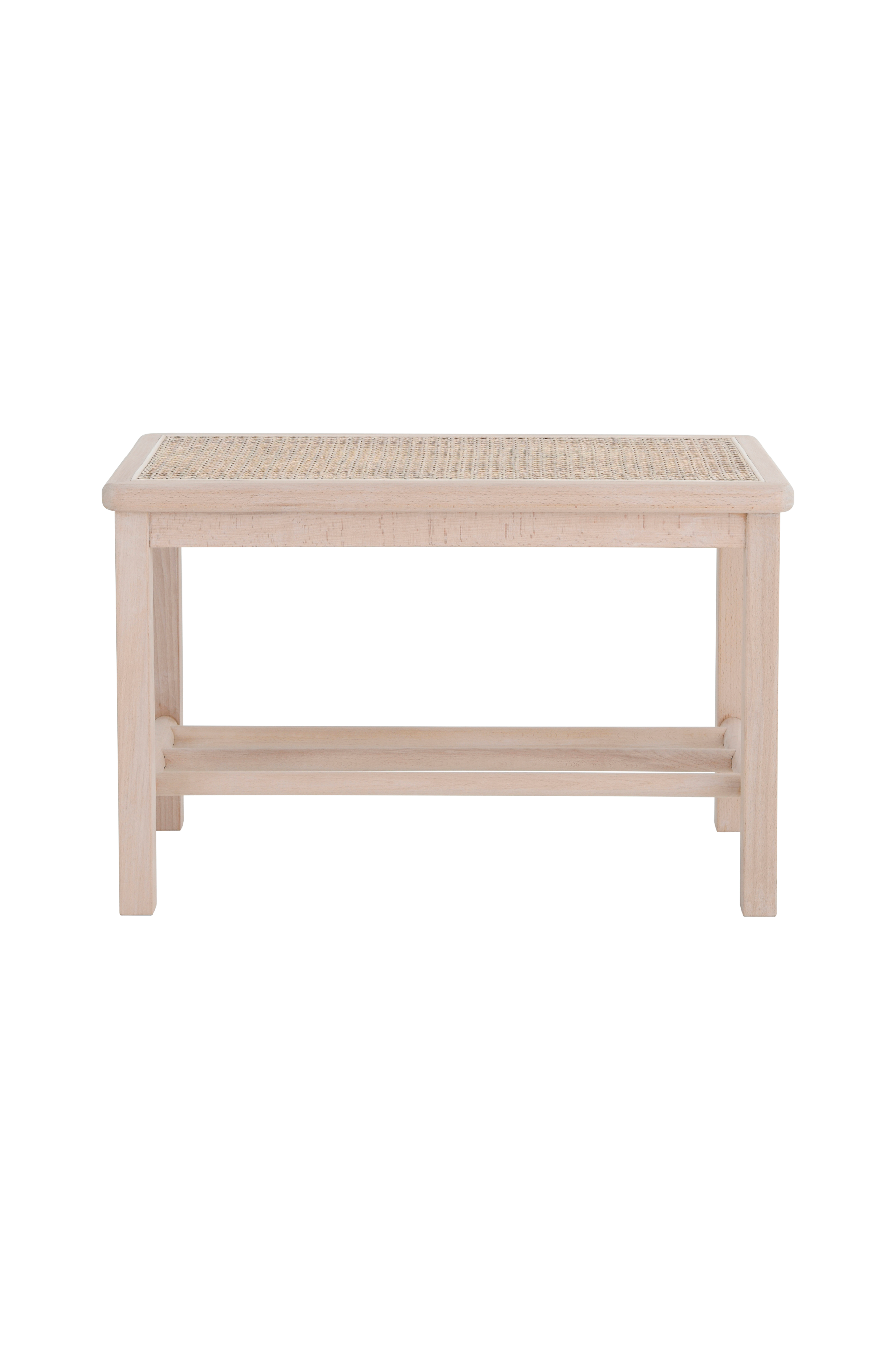 Kenkäteline/penkki vaaleaksi kuultomaalattua pyökkiä ja luonnonrottinkia. Hyllyjen välinen etäisyys 25 cm. Tila huonekalun alla 10 cm. Toimitetaan koottuna.