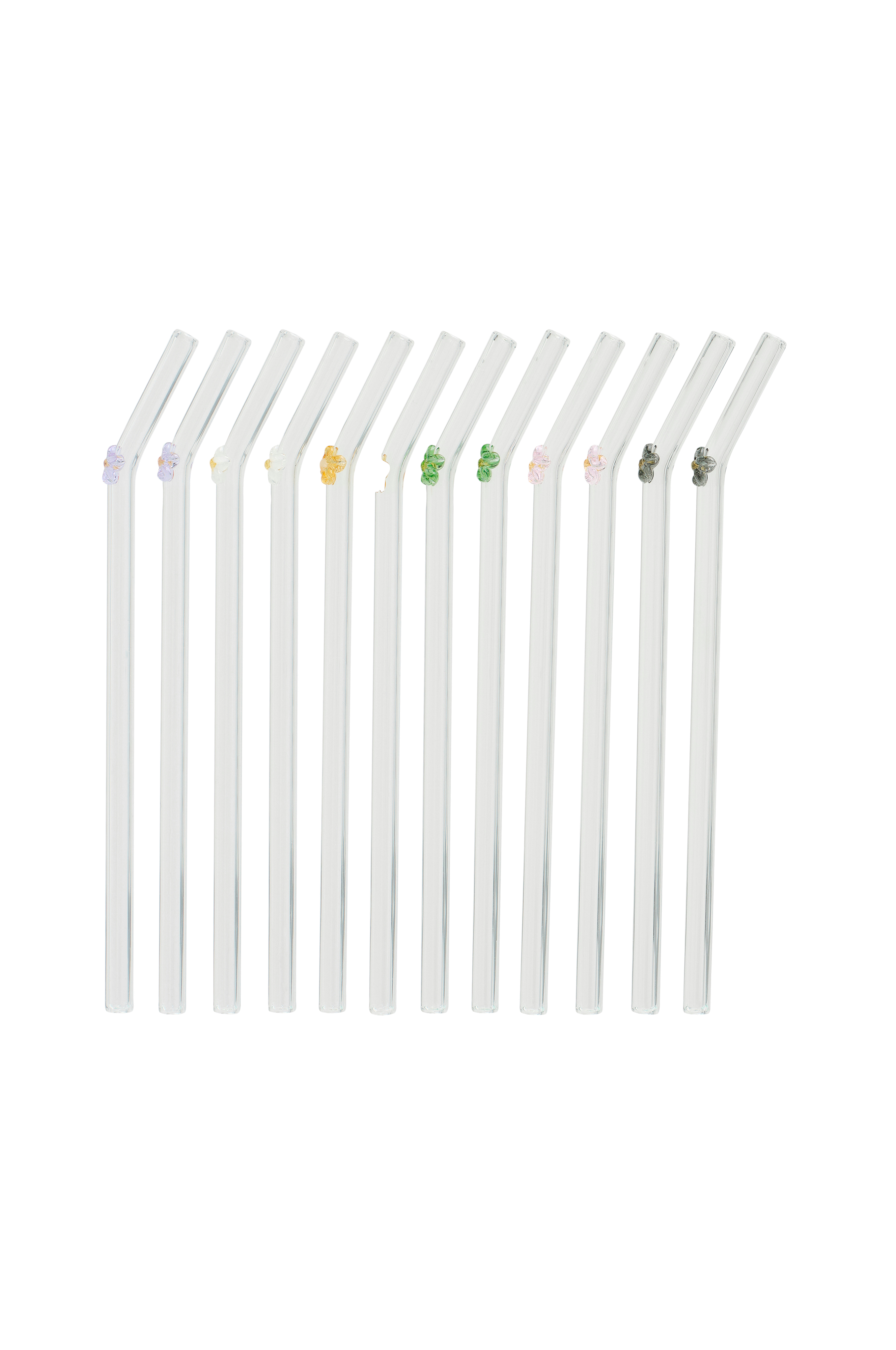 • Käytännölliset pillit lasista koristeellisilla, värillisillä kukkayksityiskohdilla ylhäällä