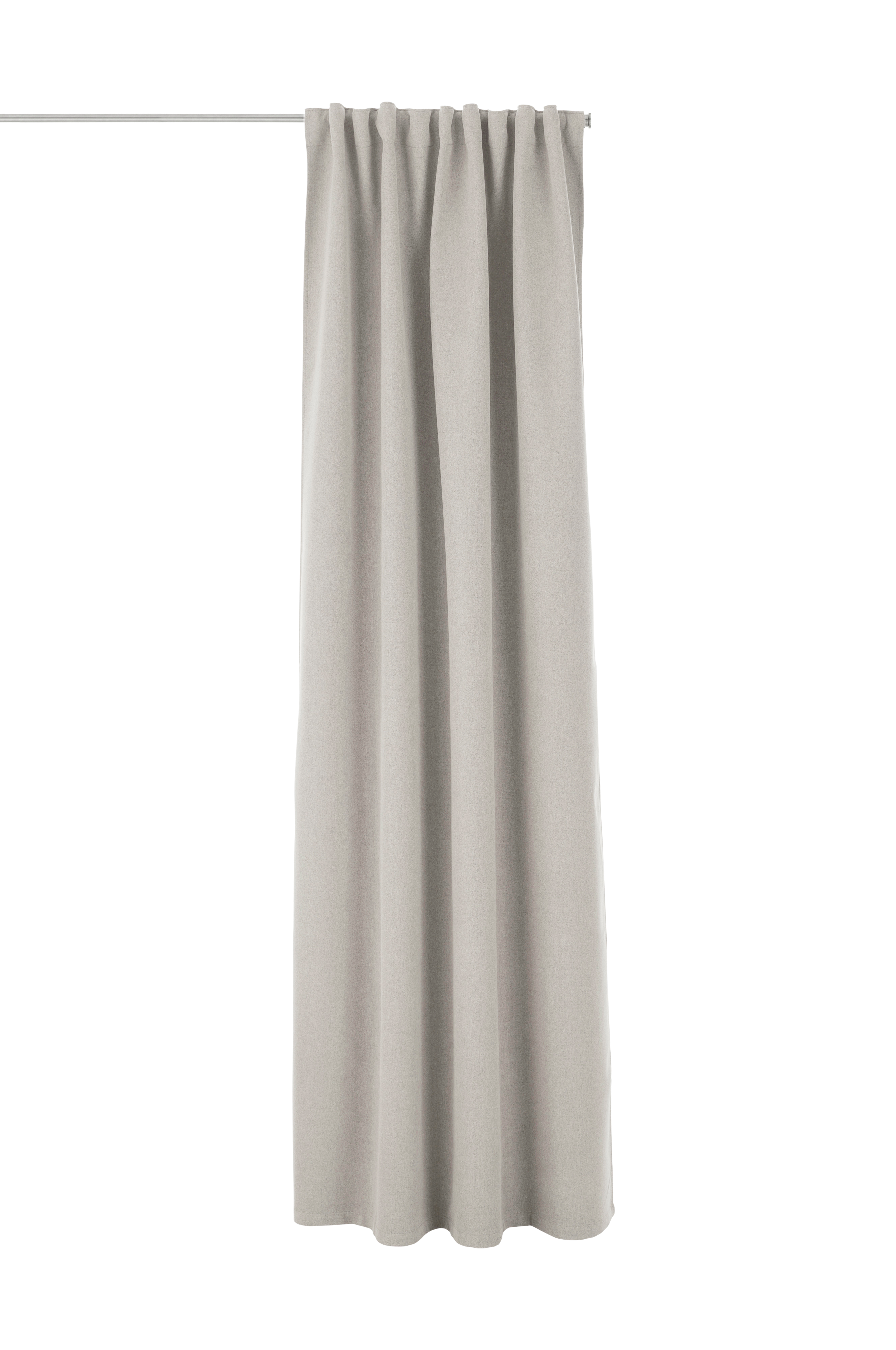 Tehokkaasti pimentävä monitoimiverho. Meleerattua polyesteriä, joka sisältää kudottuja mustia lankoja, joilla on suuri langantiheys.