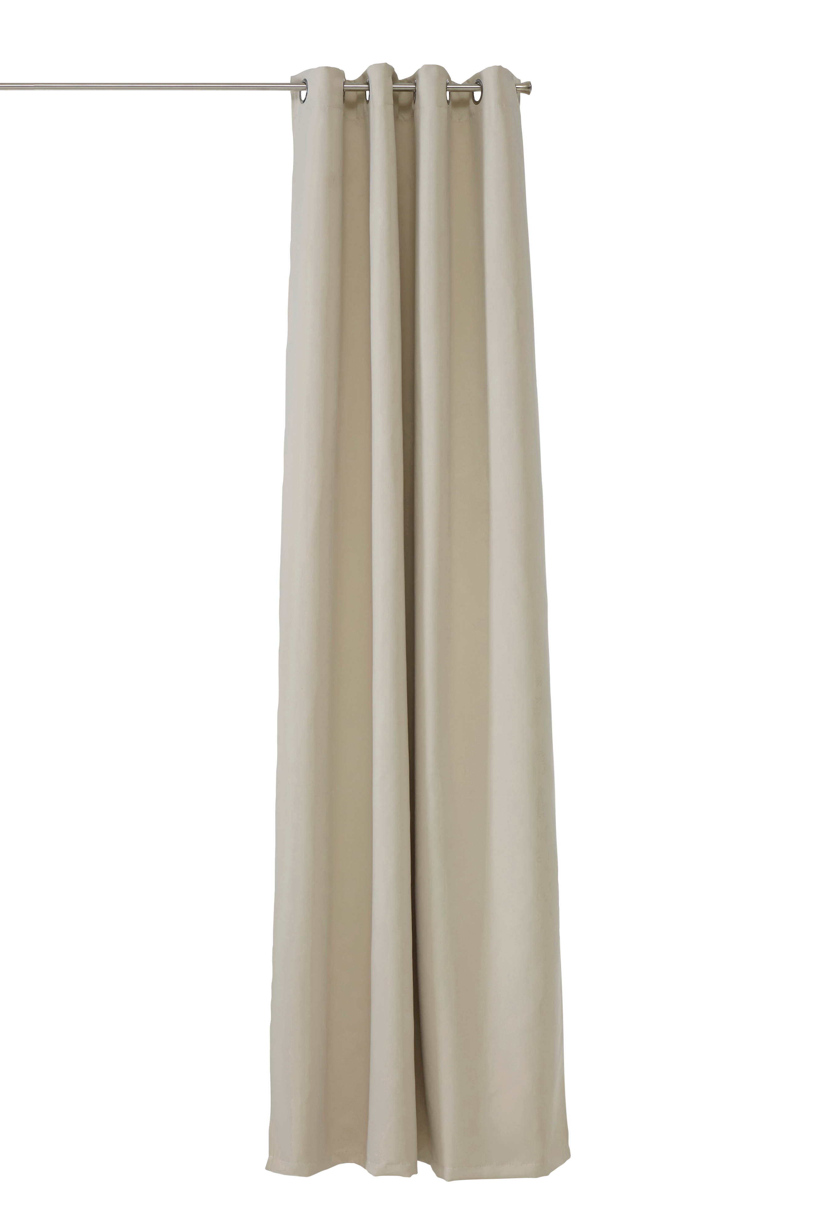 Pimennysverho, jossa hopeanväriset metallirenkaat. Verhon välikerroksen mustat langat estävät valon sisäänpääsyn. Verhossa on sointuvan sävyinen taustapuoli. Leveys 140 cm. 2 pituutta: 220 ja 250 cm. 1 verho/pakkaus.