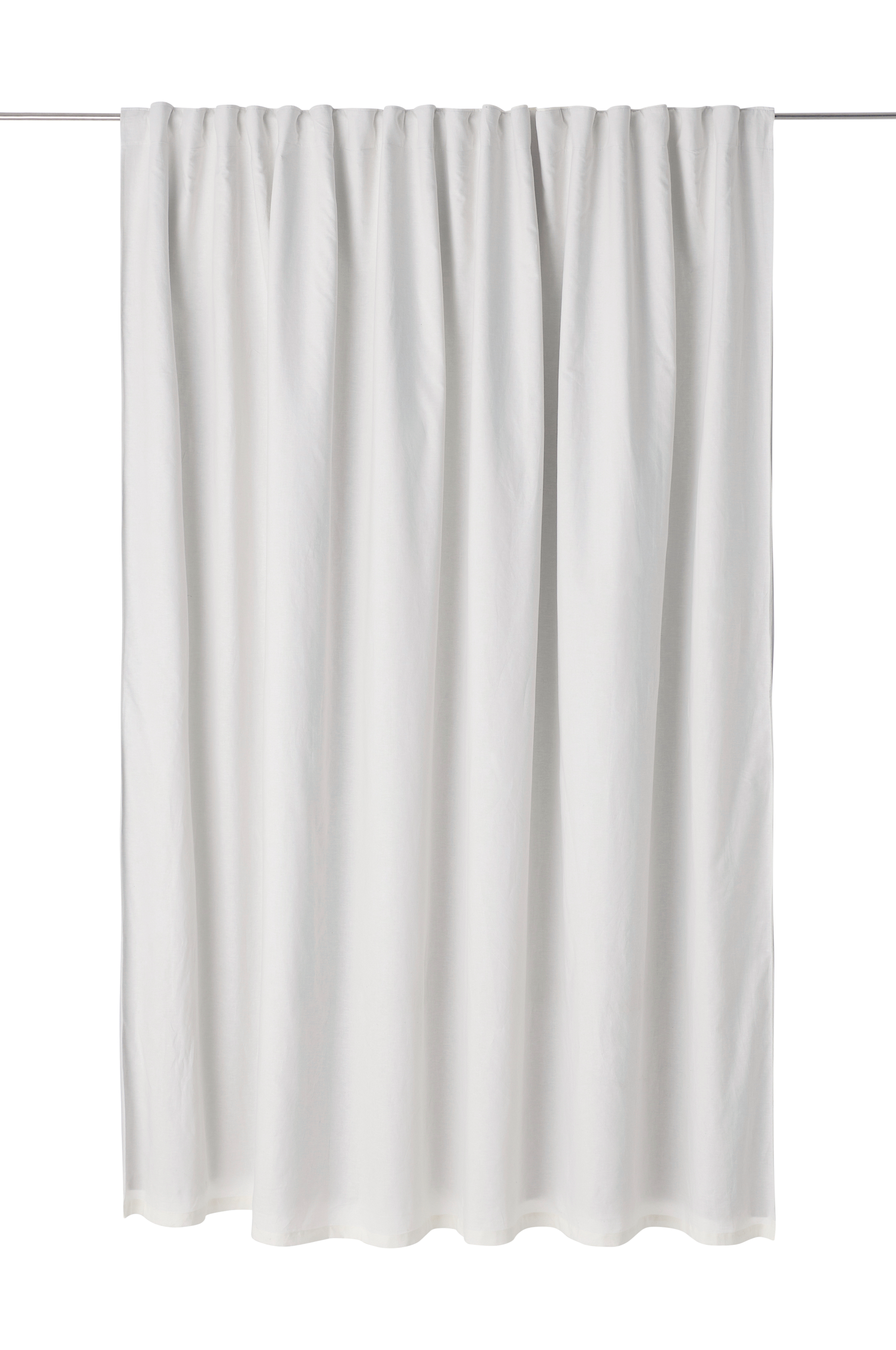 Hieno rakenne, pimentää täysin ja kaunis valkoinen väri (luonnonvalkoinen hopeanharmaaseen päin. Sopii uskomattoman hyvin vaaleanharmaiden seinien kanssa). Verhot tuntuvat ylellisi…