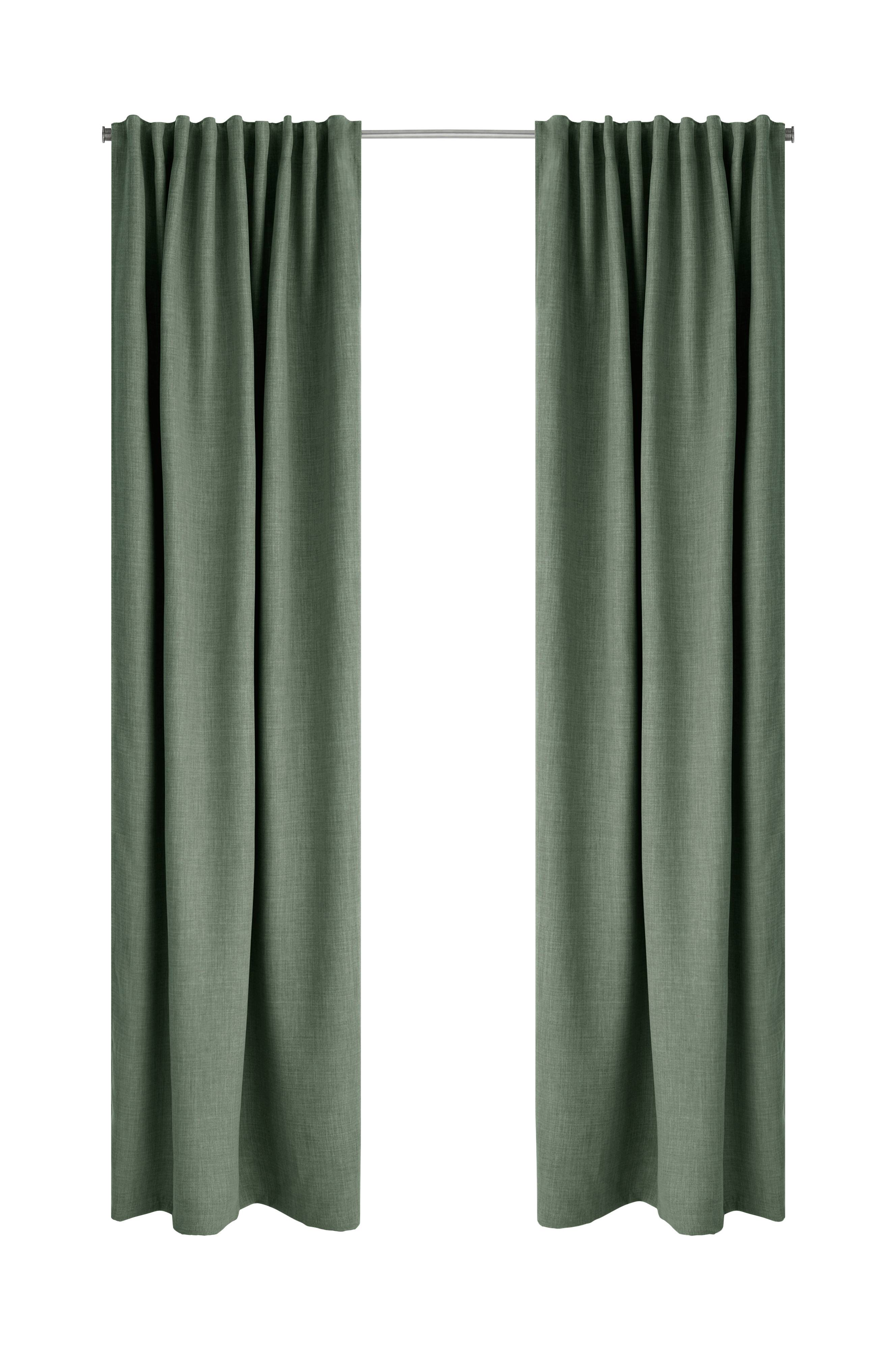 Monitoimiverho, joka toimii myös pimentävänä verhona. Verho pellavamaista, eläväpintaista meleerattua materiaalia. Verhon välikerros sisältää mustia lankoja, jotka estävät valon läpipääsyn 95%:sesti. Monitoiminauha ripustusrenkaita, poimutusnauhakoukkuja, neulakoukkuja tai sormikoukkuja varten. Voidaan myös pujottaa suoraan verhotankoon. Verho on takaa sointuvan sävyinen. Leveys 140 cm. 3 pituutta: 220, 250 ja 300 cm. Myydään 1 kappaleen pakkauksessa.