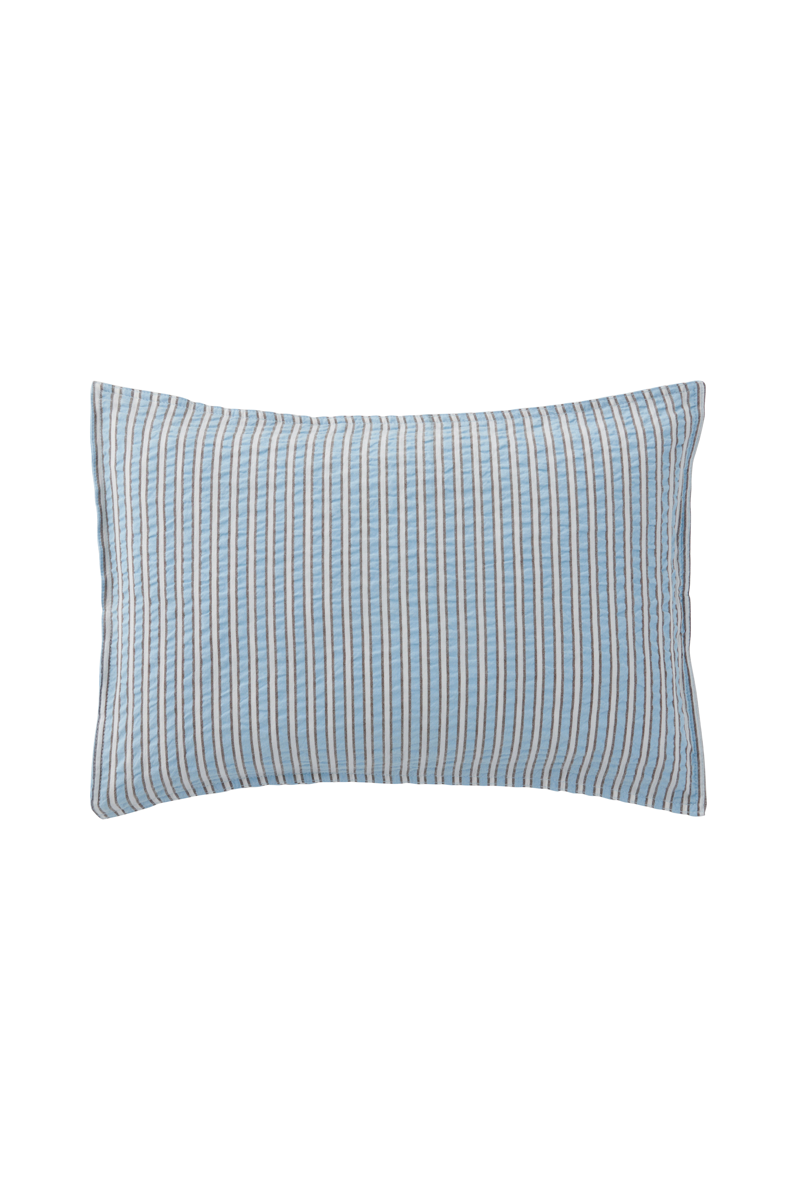 Tyynyliina ekologisesta puuvillasta valmistettua seersucker-materiaalia (puuvillakreppiä). Kaksinkertaiset farkkusaumat ympäriinsä. Langantiheys 144 TC. Koko 38x55 cm. Taite 25 cm.
