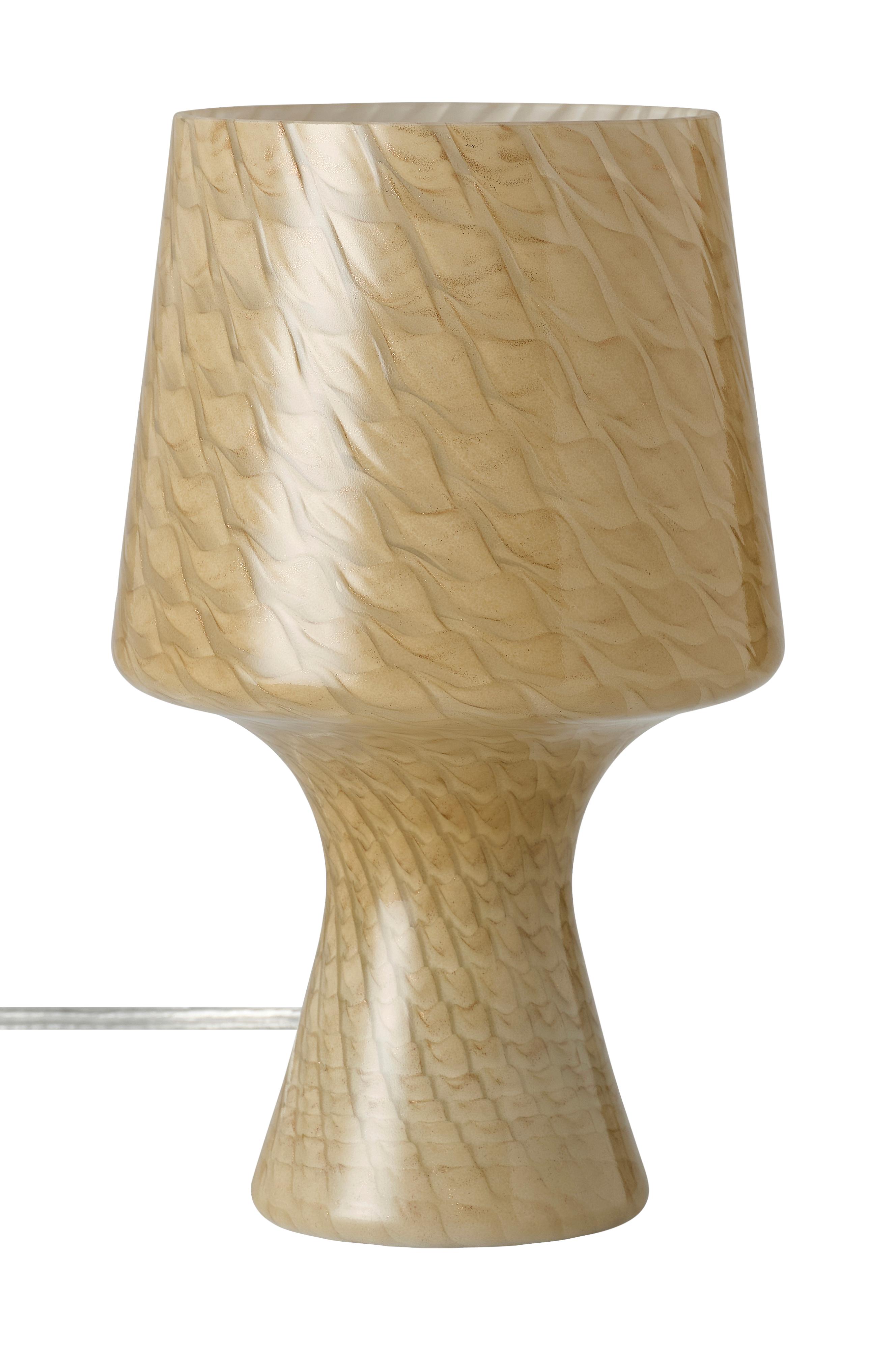 • Pöytävalaisin, joka on valmistettu yhdestä palasta kuvioitua lasia.
