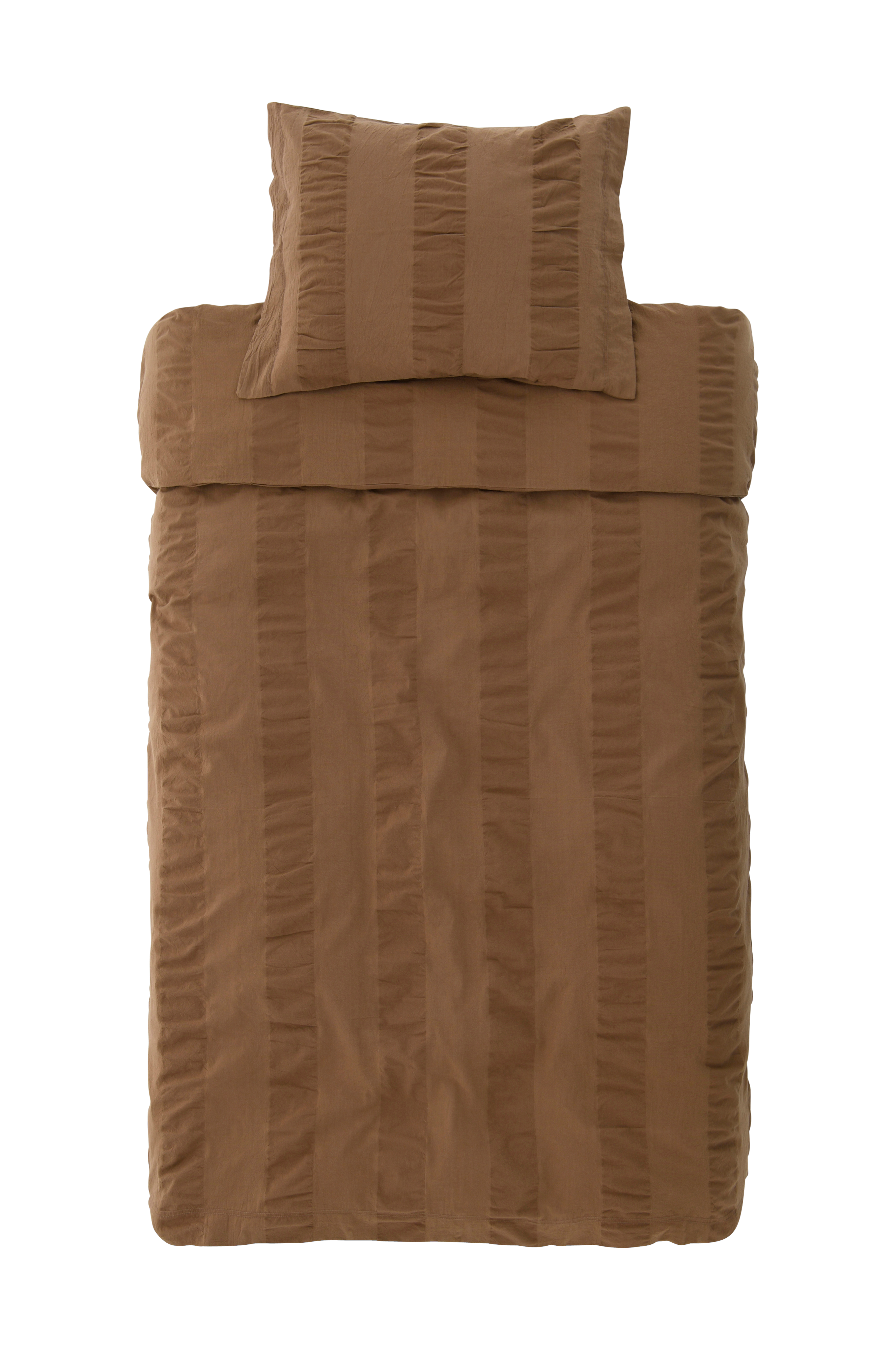 Pussilakanasetti seersucker-kangasta (puuvillakreppi), jossa leveät raidat klassisena struktuurikuviona. Pestyä ekologista puuvillaa. Langantiheys 144 tc. Painonapit pussilakanan alareunassa. Tyynyliinassa 5 cm:n reunus lyhyillä sivuilla. Pussilakana 150x200 cm ja tyynyliina 50x60 cm. Toimitetaan samasta materiaalista valmistetussa kangaspussissa.