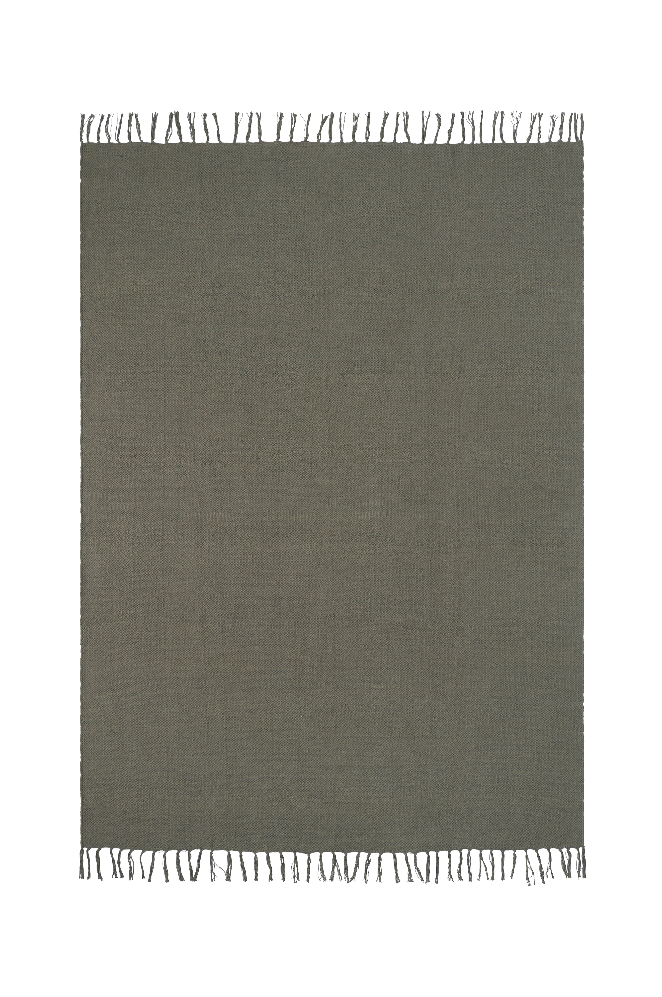 Sileä puuvillamatto, jossa värjätyt hapsut. Korkeus 0,5 cm.