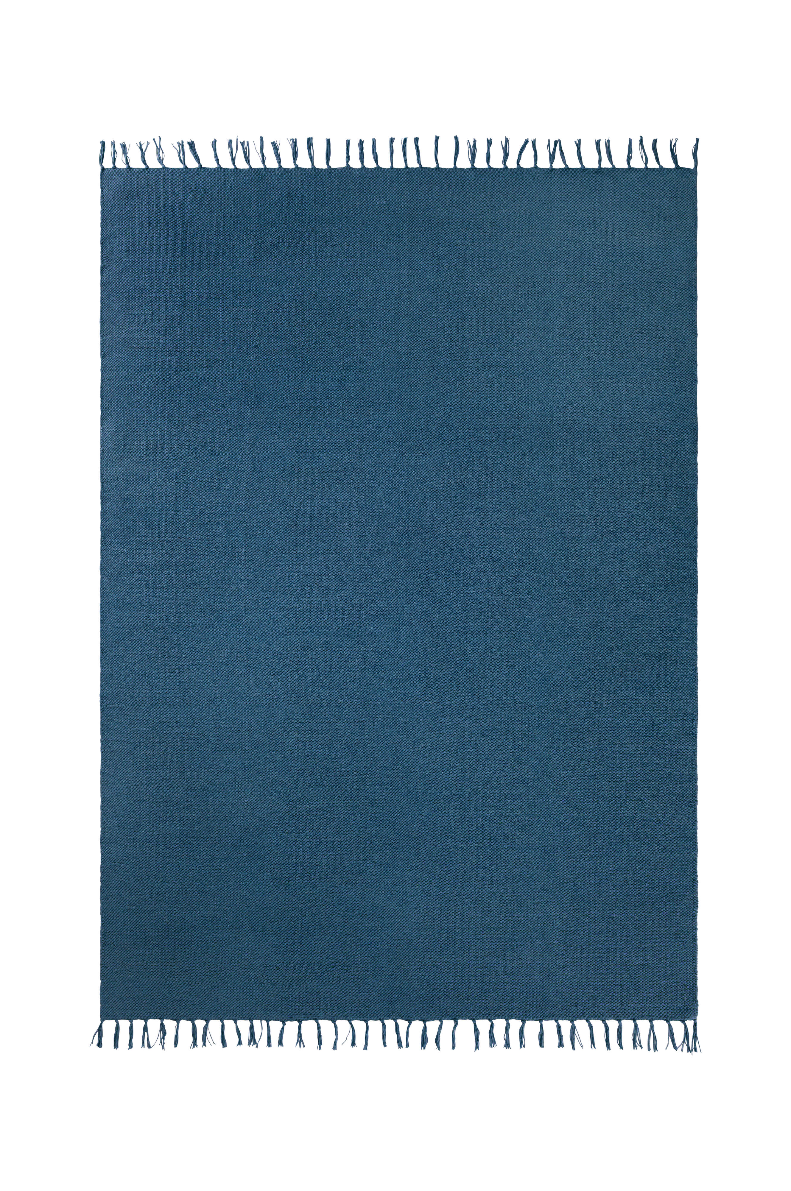 Sileä puuvillamatto, jossa värjätyt hapsut. Korkeus 0,5 cm.